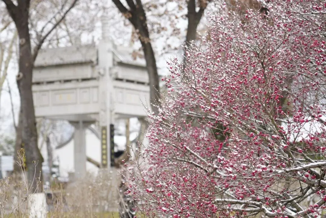 细碎雪粒盖满梅枝