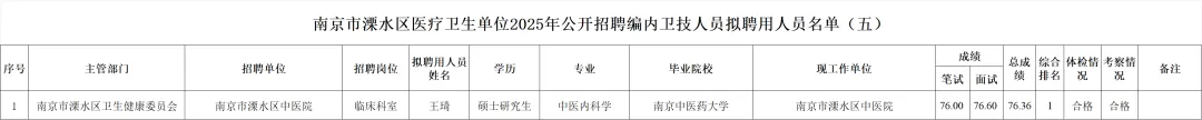 附件:南京市溧水区医疗卫生单位2025年公开招聘编内卫技人员拟聘用人员名单(五)