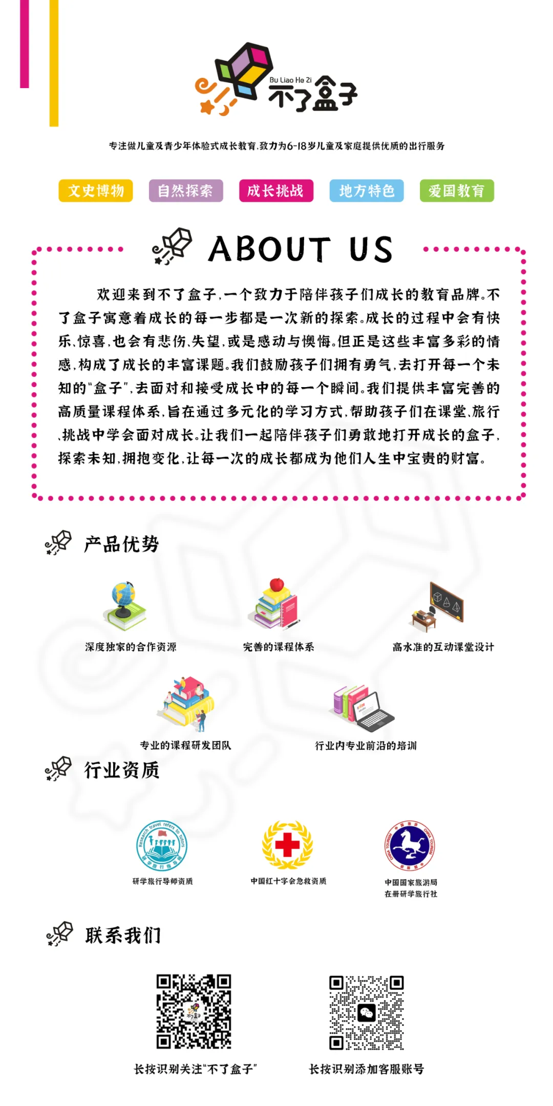 完成各种谜题、综艺任务、角色扮演、场景游戏的同时,获得知识、拓宽真实的视野,学会独立的勇敢,体验最新奇刺激的城市游学方式。
