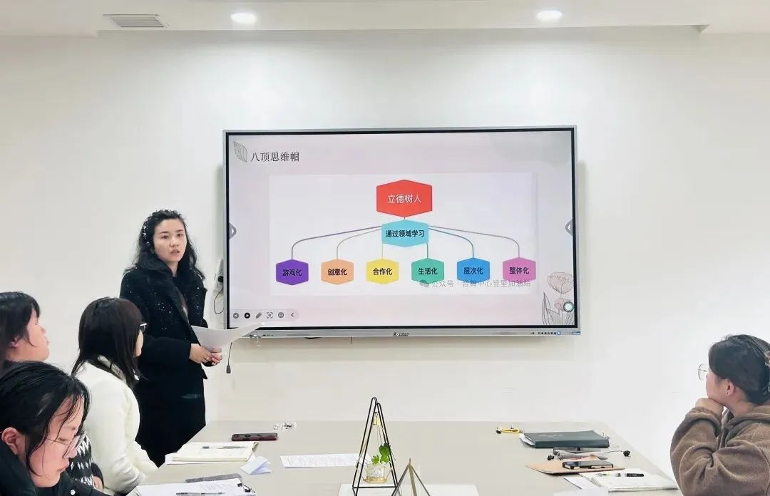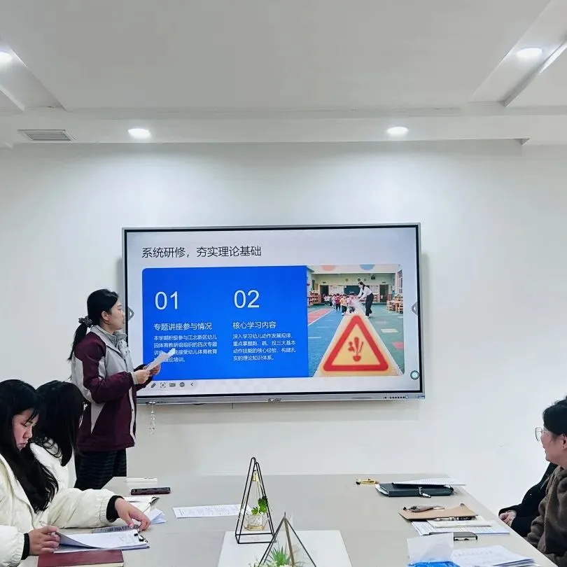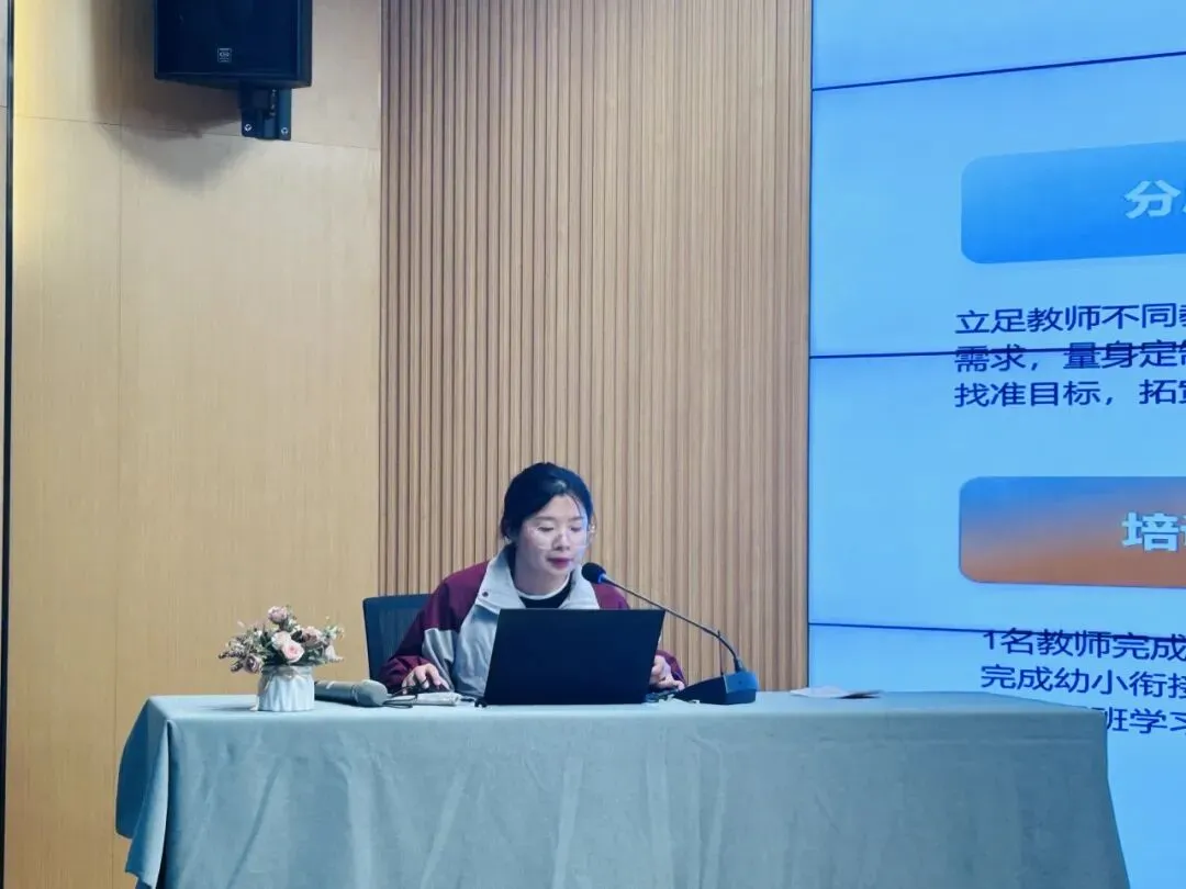 分管教育教学的解静老师,从本学期课程实施的推进细节、教学成果的沉淀积累、各类活动的落地成效三方面展开深入总结,对全体教师扎实履职、稳步推进各项工作的付出与成效给予了充分肯定。同时,为助力园所教育教学质量再提质,解老师也在一日活动、课程内容和个人发展三方面给每位教师提出合理期望,希望大家持续深耕专业领域,以更饱满的热情与更扎实的能力赋能幼儿成长。
