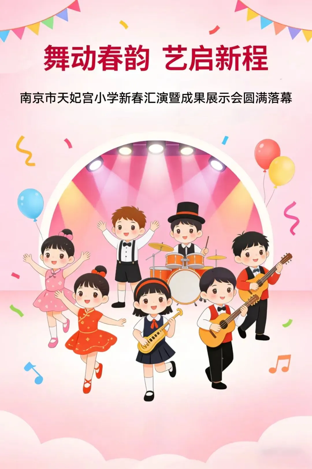 本次活动以“春”为脉络,精心铺展四个篇章,层层递进、精彩纷呈。第一篇章“春醒万物”中,孩子们用优美灵动的舞姿点亮春的序曲:舞蹈《絮语》以柔美的肢体语言诉说着春的萌动与生机,《春铃雅韵》则以清灵的意象唤醒晨光、勾勒春意,充分展现了天小学子扎实的艺术功底与卓越的艺术素养。