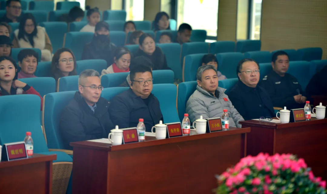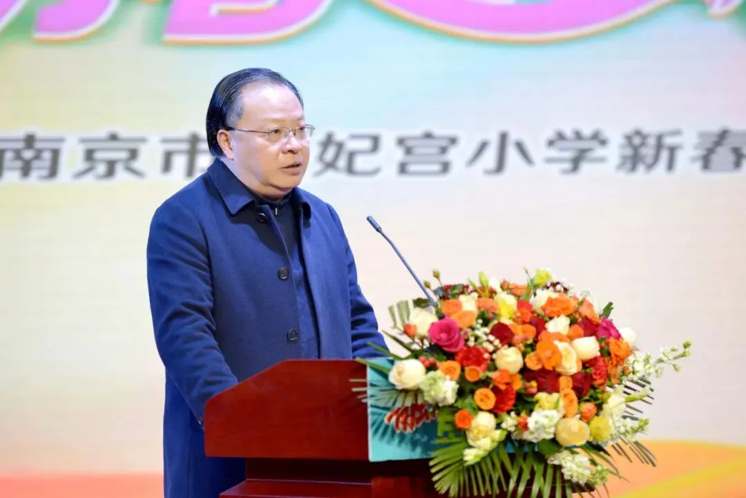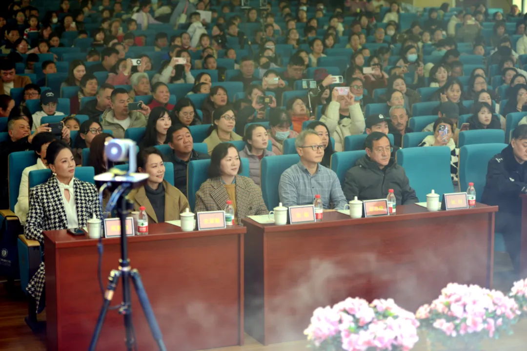 南京市鼓楼区下关街道办事处党工委书记李晓明,南京市公安局交通管理局鼓楼区大队大队长戴世明,南京市公安局交通管理局鼓楼区大队政委汪盛,南京市鼓楼公安分局阅江楼派出所教导员曹云峰,鼓楼区检察院关工委常务副主任姚旭,南京医科大学第二附属医院儿科主任朱丹荣,南京大学天文与空间科学学院、江苏省天文学会秘书长彭志欣,南京市羽毛球运动学校校长解永胜,南京市鼓楼区教育局校外培训监管科科长王小海、南京市鼓楼区少年宫主任张敏、南京市鼓楼区少先队总辅导员、区少工委副主任宋雪敏,以及天妃宫小学教育集团总校长、党总支书记杨俊,校长范颖琼等一众领导嘉宾莅临现场,与全体师生、家长欢聚一堂,共赴这场融合艺术展演与成果展示的新春盛会。
