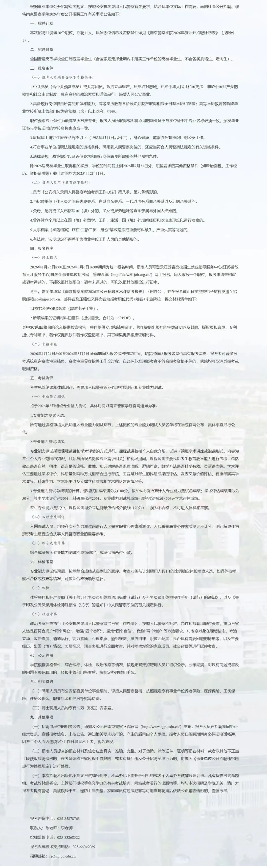 >南京警察学院丨教师岗11名丨截止3.6