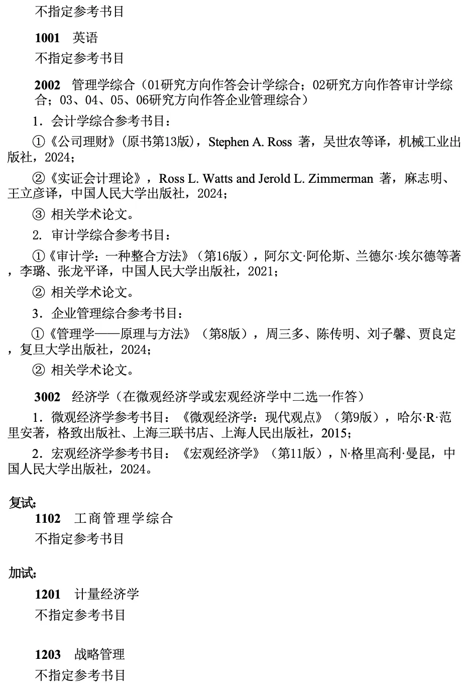 南京财经大学2026年博士研究生招生考试参考书目