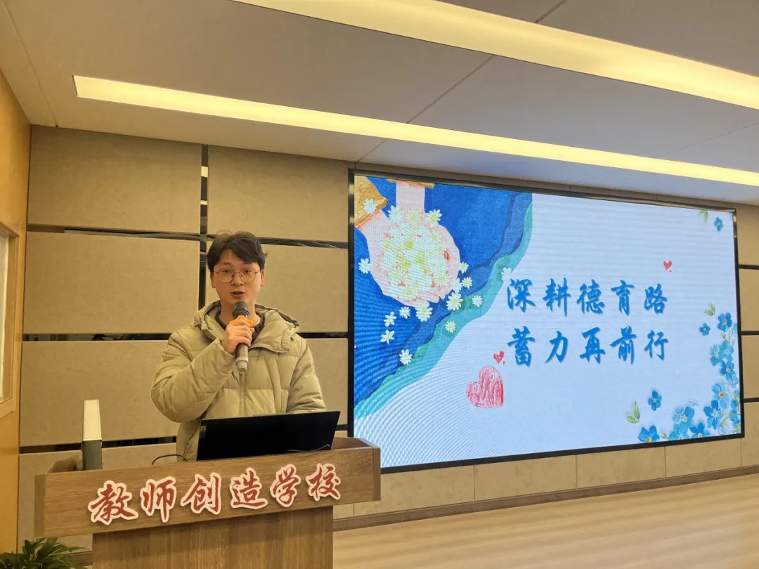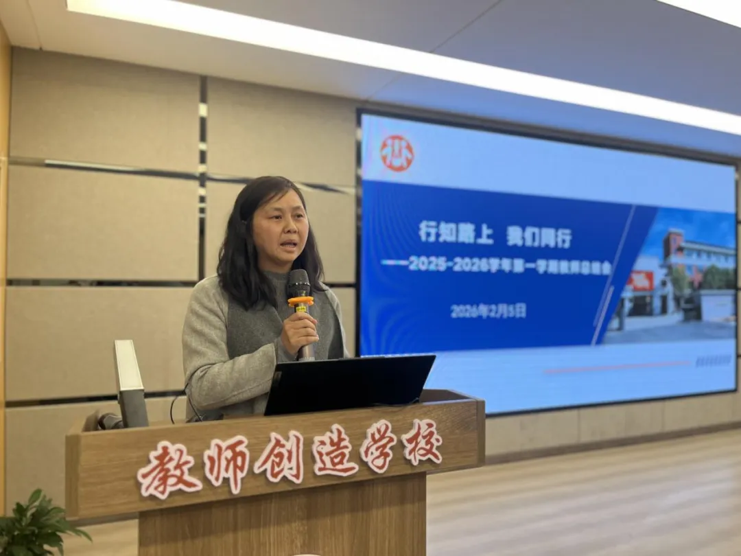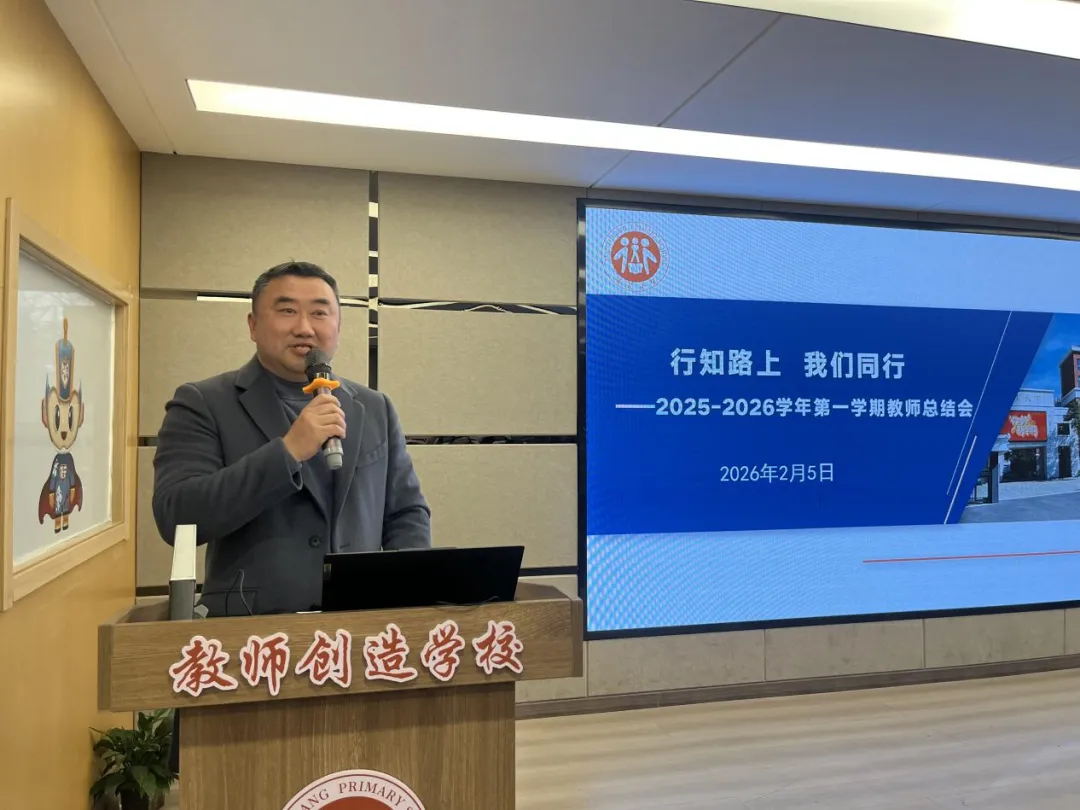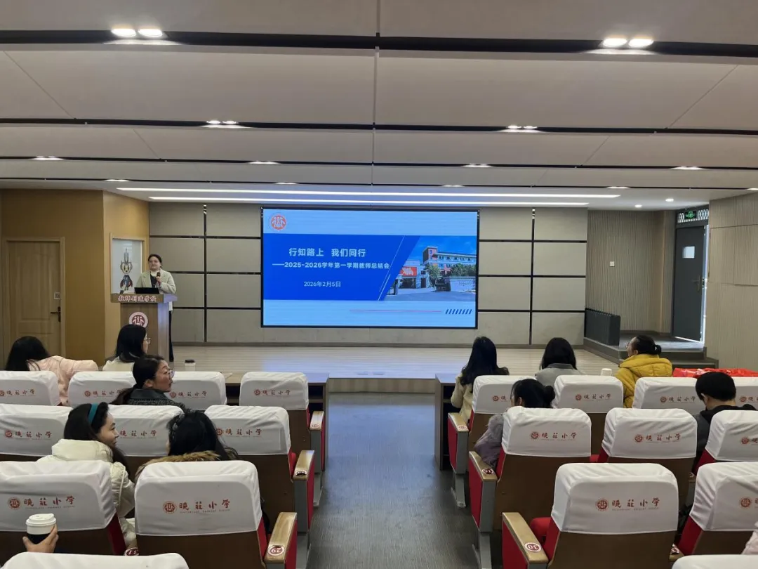 为全面总结学期工作,凝聚团队力量,营造感恩协作的校园文化,南京市晓庄小学文濬分校于2月2日召开了以“行知路上,我们同行”为主题的2025-2026学年度第一学期教师总结会。本次会议形式温馨、内容扎实,既有部门工作的深度反思,也有同事之间的真情致谢,充分展现了学校教师团队的凝聚力与教育热情。
