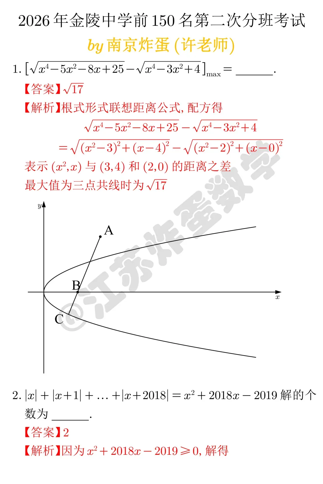 2026年金陵中学高一年级前150名选拔考试压轴题解析