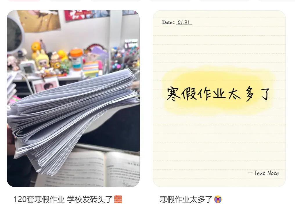 社交平台上有不少学生吐槽自己的寒假作业太多了。