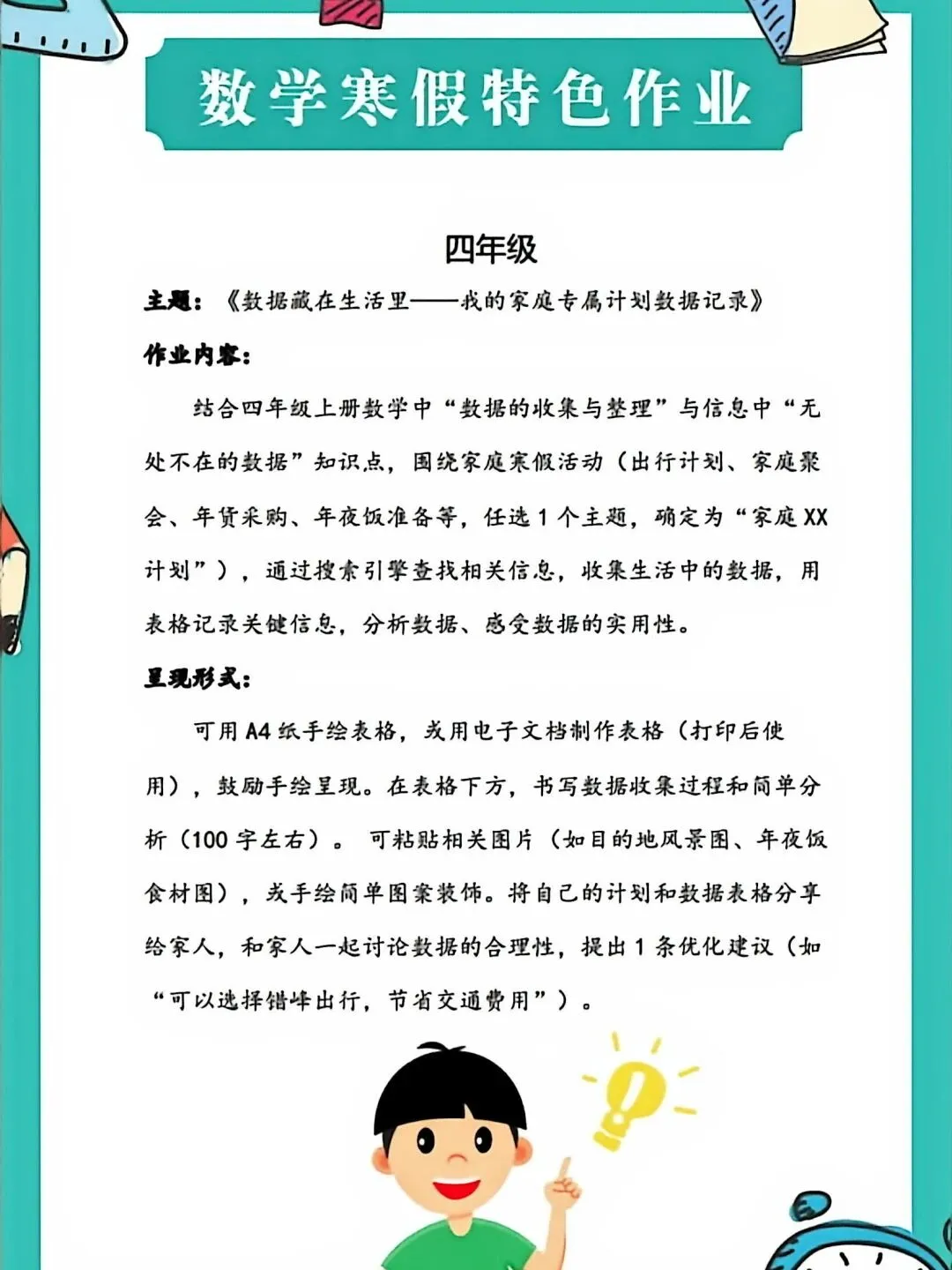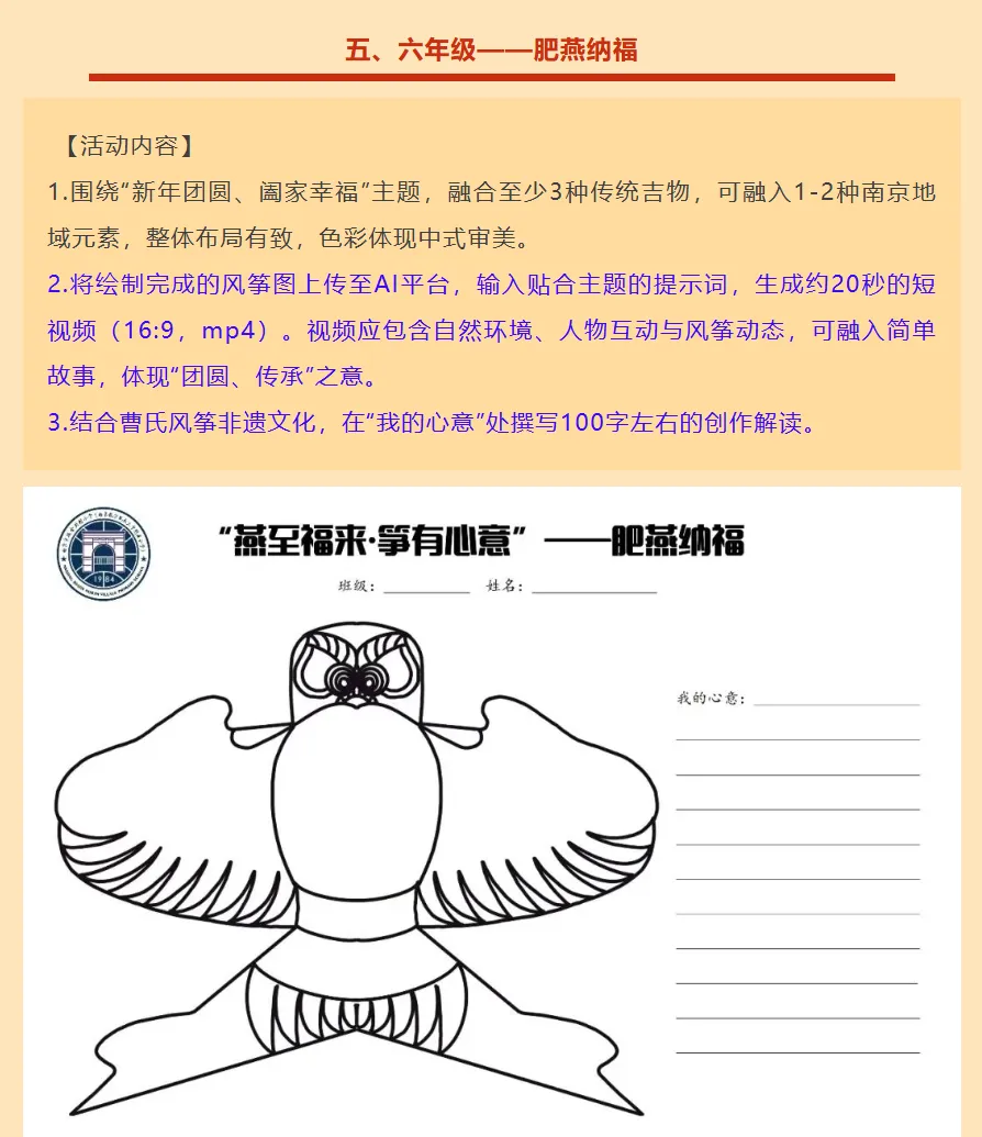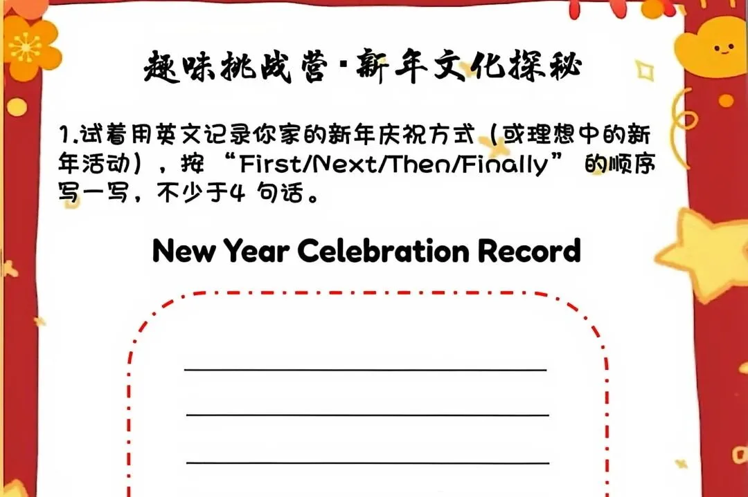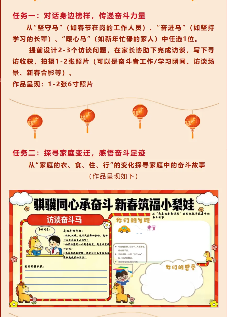 老师们精心设计的“五星骏马”寒假特色作业正式发布啦!本次作业围绕“德、智、体、美、劳”五大维度,融合多学科知识与南京本土文化,让大家在玩中学、做中悟。无论是用英语介绍南京传统节日,还是制作南京民俗主题插画,都能让孩子在实践中巩固知识、感知家乡魅力。