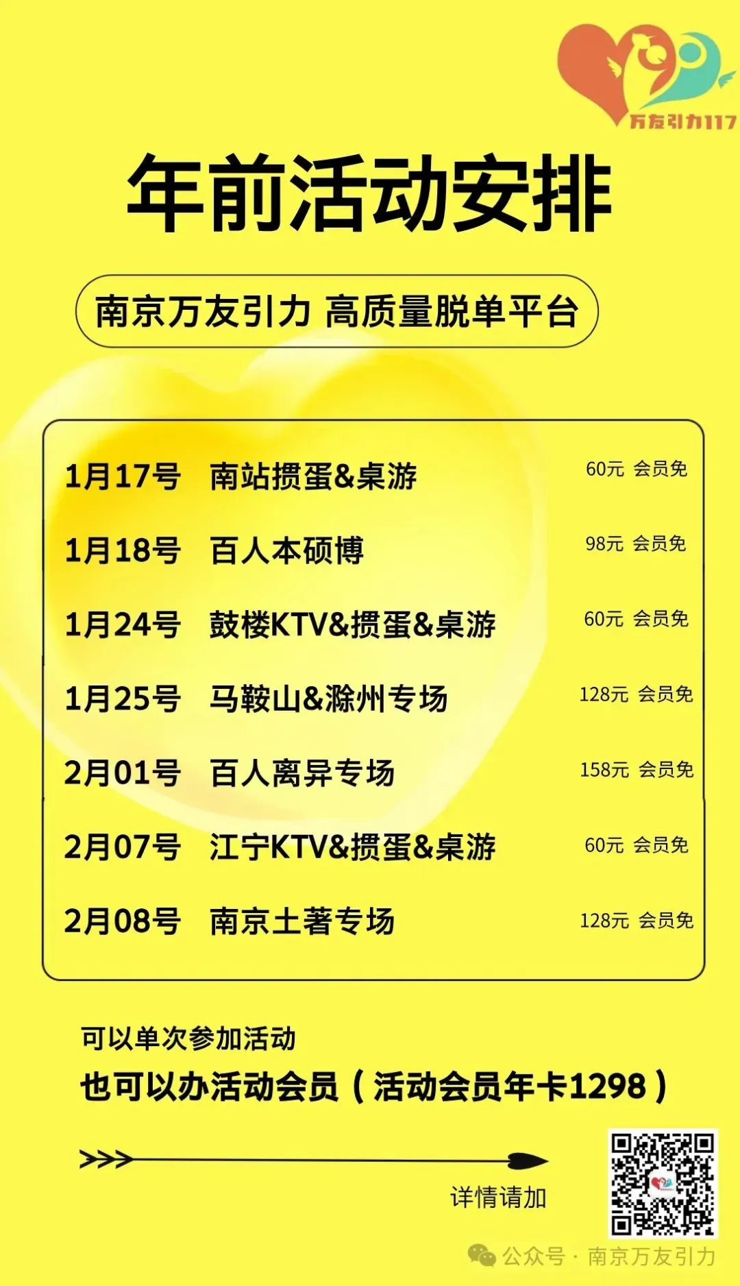 万友引力117是南京地区高品质单身交友平台,是南京地区主要针对国内985、211名校及海外名校校友的精品交友平台。扫描下方二维码上榜快速脱单!