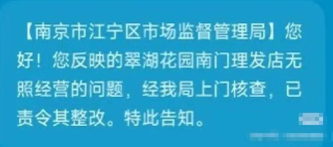 此前江宁区市场监督管理局的反馈
