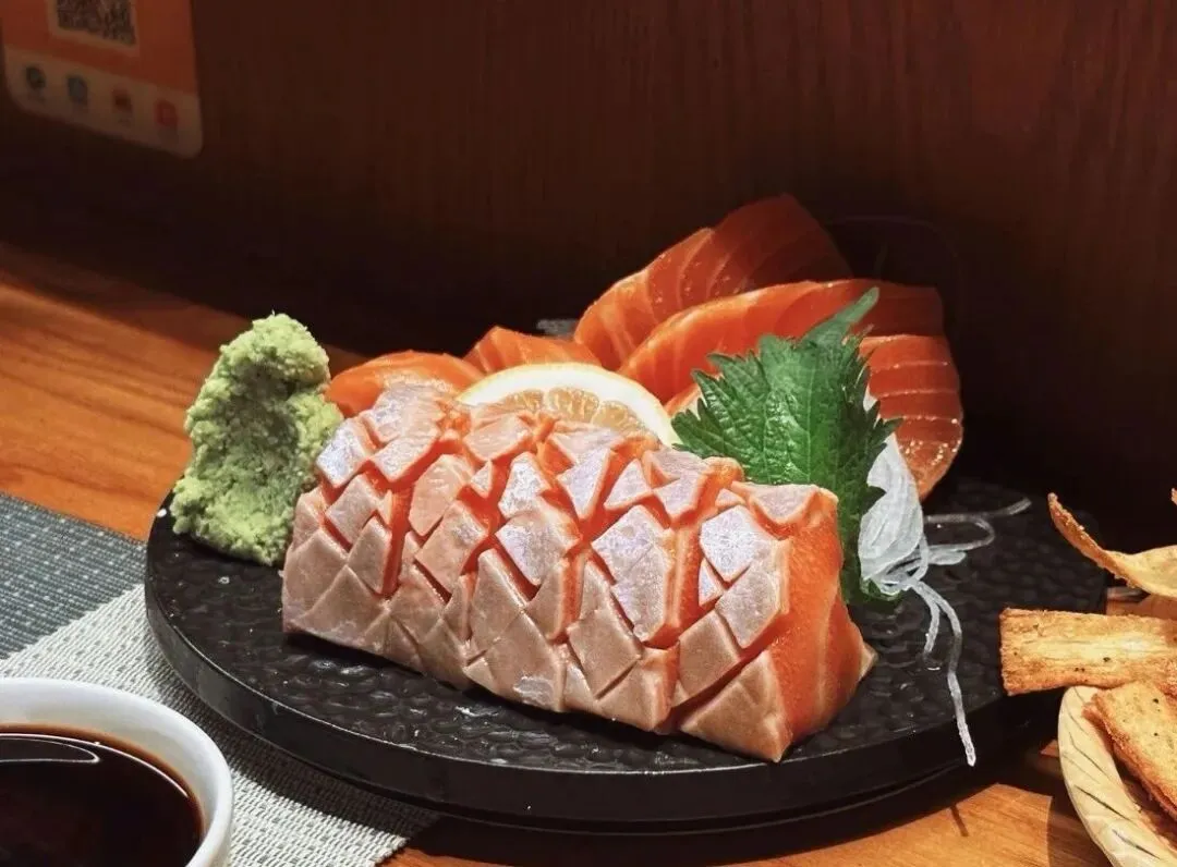 - 三文鱼腩厚切当许多料理店将刺身切得菲薄以显刀工之时,这里的三文鱼厚切,却以近乎“笨拙”的慷慨,带来扎实的满足。丰腴的油脂在口中温柔化开,价格却平易近人。