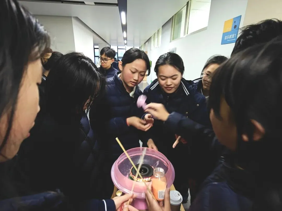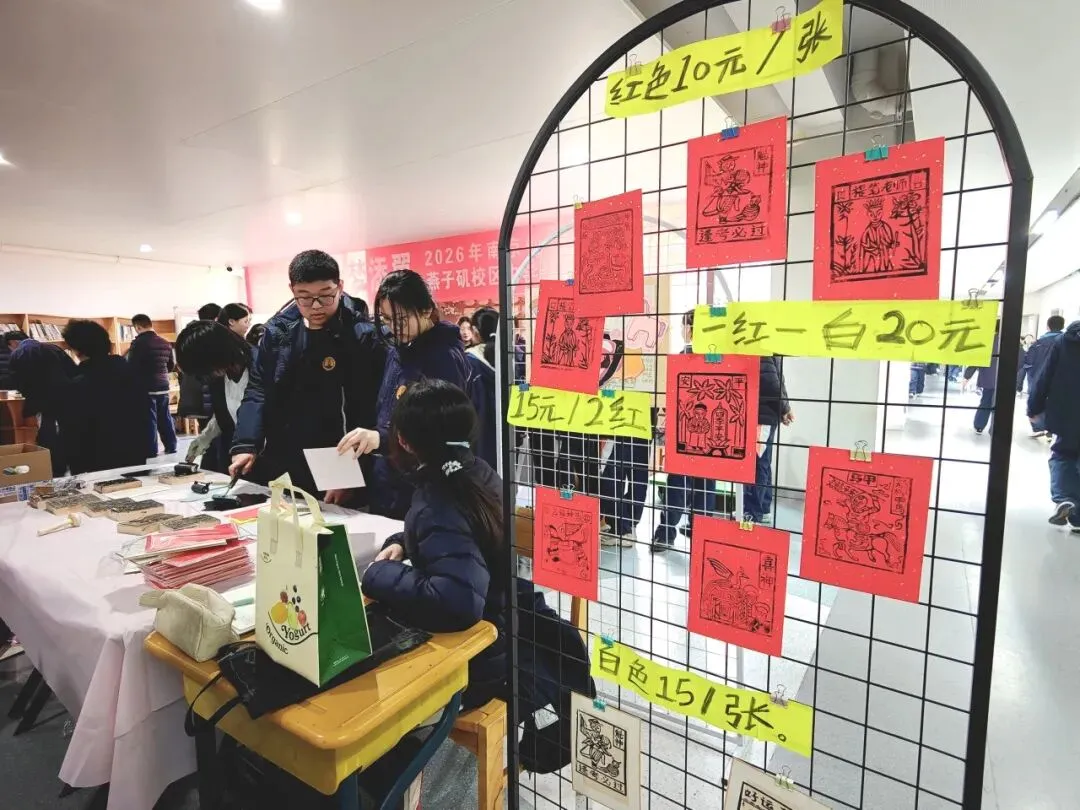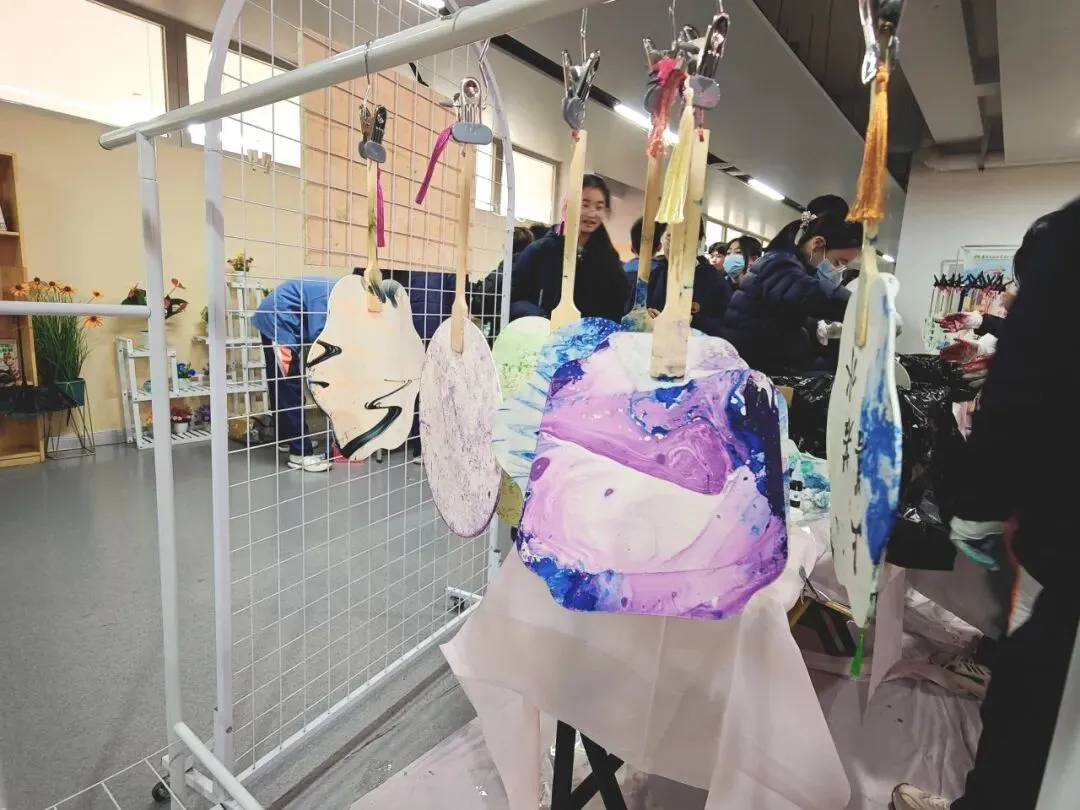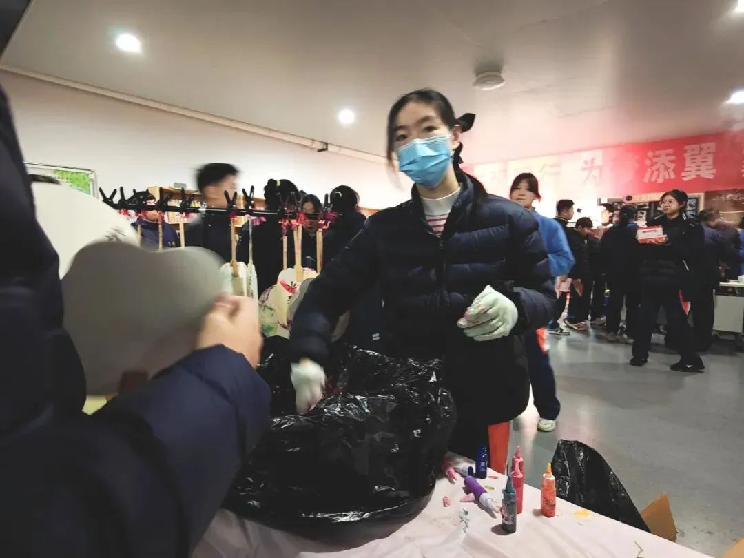 传统与创意交融的体验项目格外受捧,漆扇制作摊位前,同学们凝神勾勒线条、用心调配色彩,亲手打造独属于自己的文创佳作。现场各班同学分工协作、各司其职,出纳员认真记账、宣传员热情推介、管理员有序维持秩序,摄影师则用镜头定格下一个个温暖动人的瞬间。