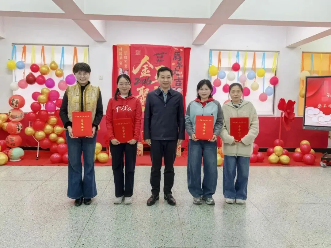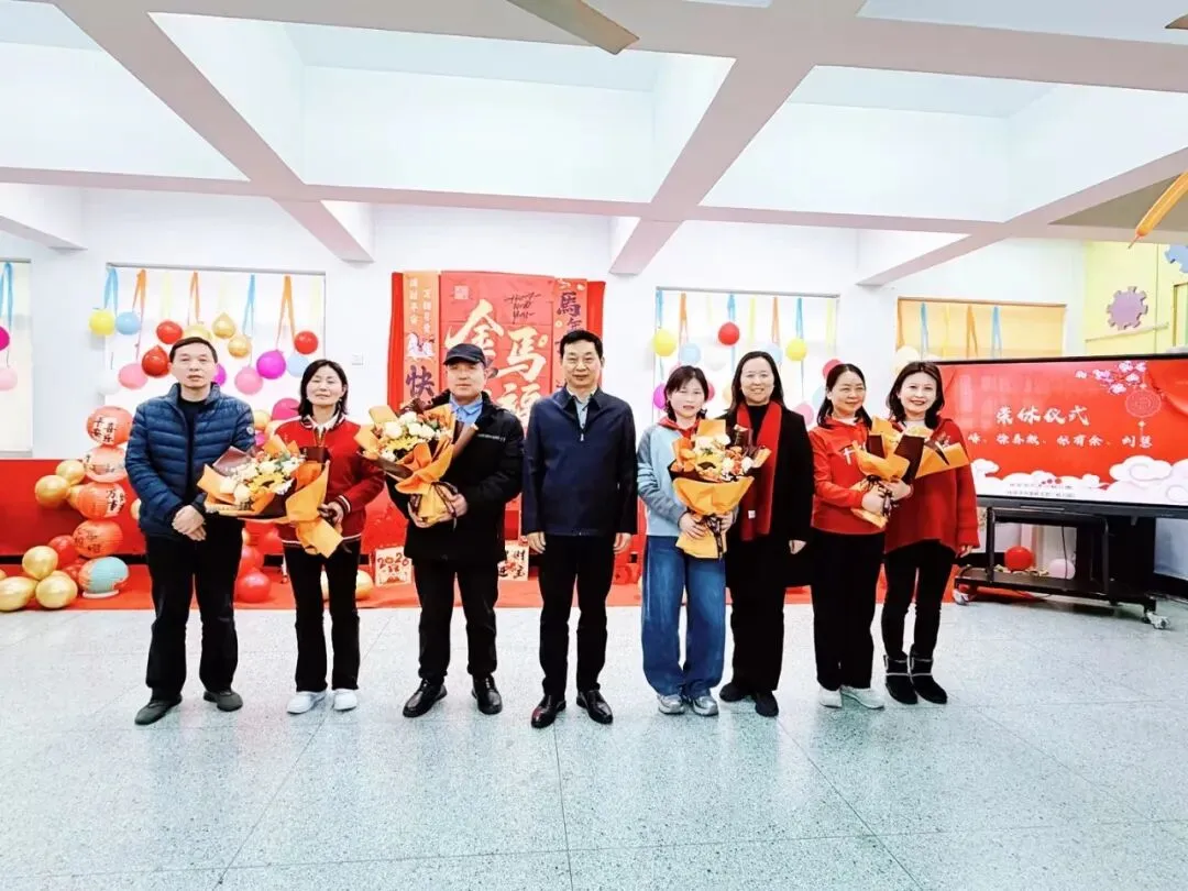一场温馨而隆重的欢送仪式将现场氛围推向高潮。幼儿园为将于2026年光荣退休的四位教职工献上鲜花,感谢他们将最美的年华奉献给幼教事业,用爱心与智慧滋养了一代又一代幼苗。全场以热烈的掌声向这些可敬的“园丁”表达崇高敬意与美好祝福,感恩与传承在此刻静静流淌。