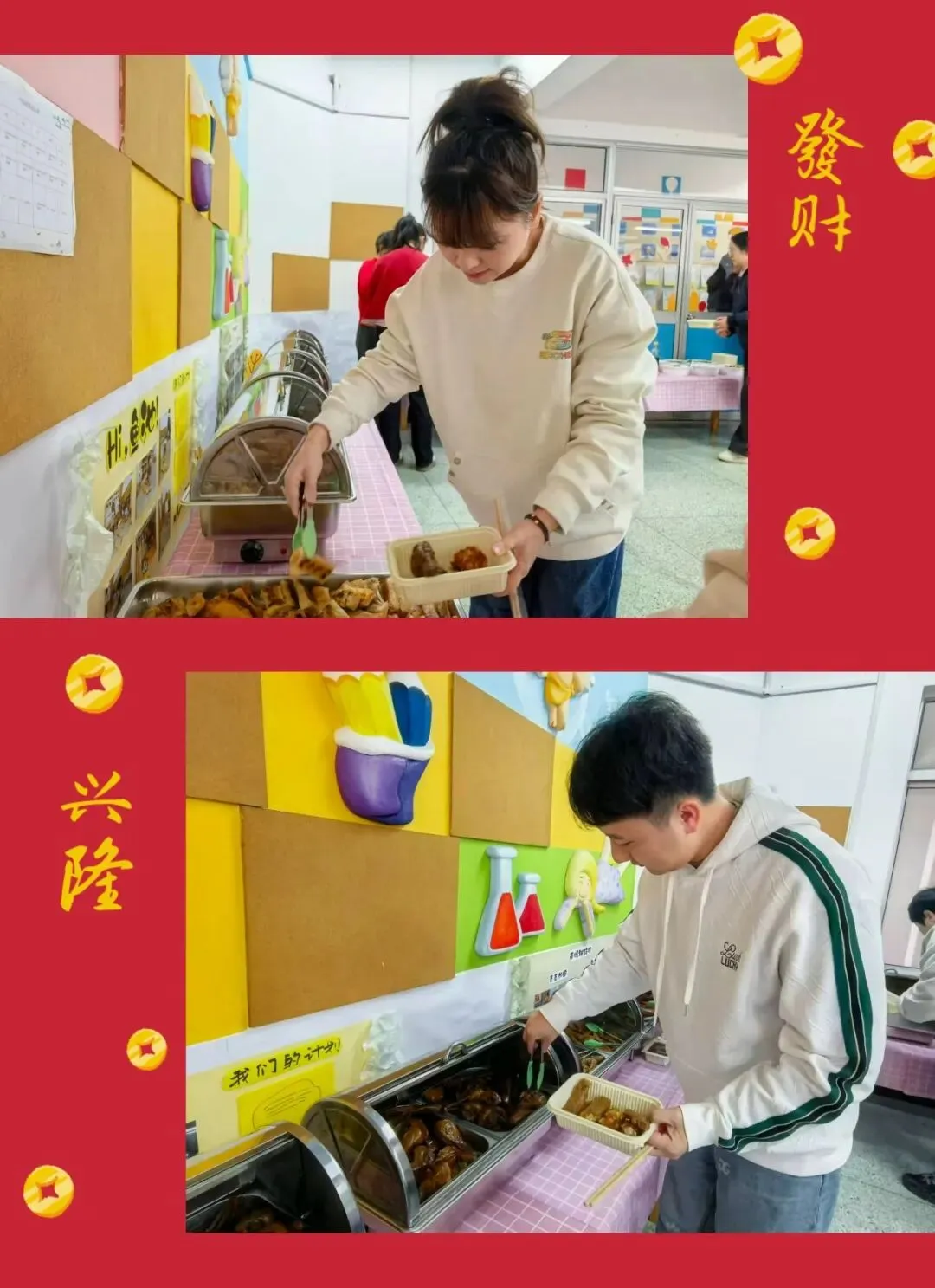 包饺子环节暖意融融。老师们围坐一起,揉面、擀皮、放馅、捏合……每一道工序都流淌着默契与温情。热气腾腾的饺子上桌,伴着丰盛佳肴,温馨的聚餐正式开始。举杯互敬,笑语盈盈,共同感受六一大家庭的温暖与幸福。