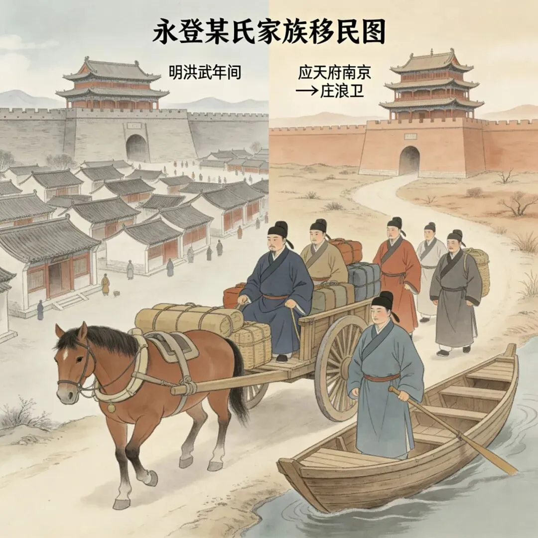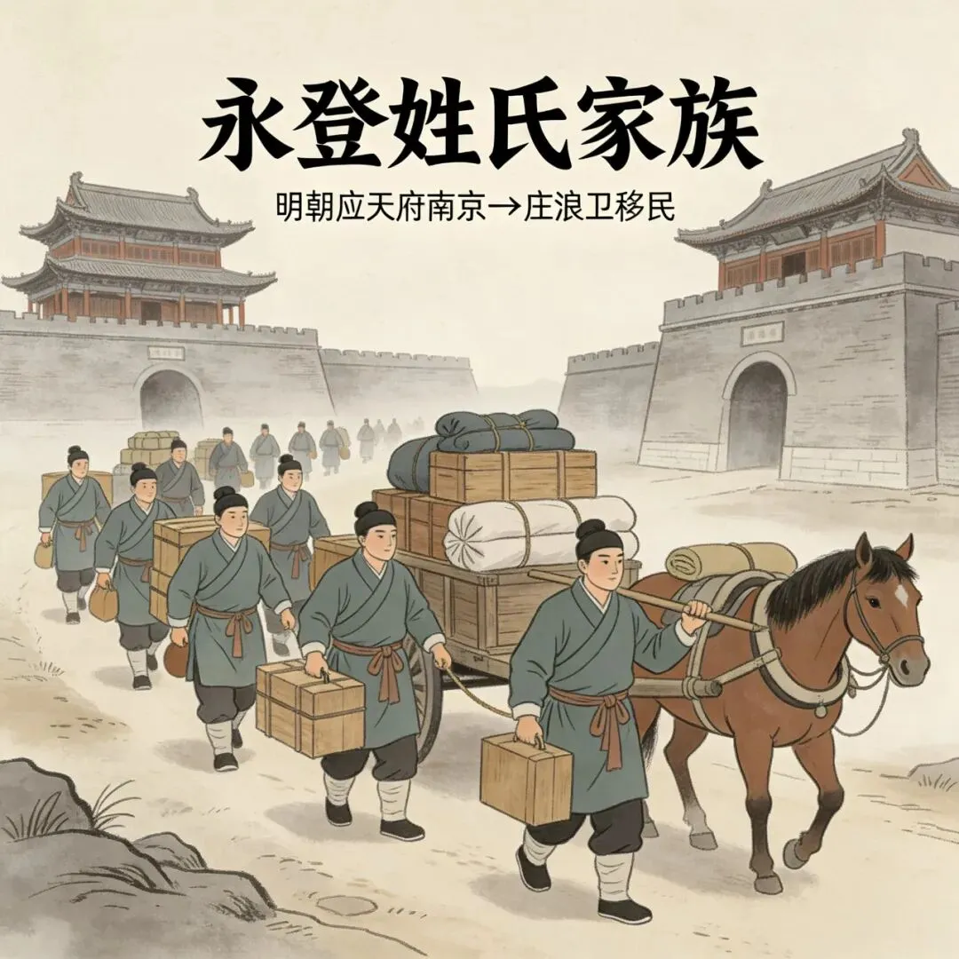 永登明代从应天府(南京)迁来的姓氏家族,迁徙过程均以明朝官方主导为核心,军户、谪迁、民屯家族各有标准化流程,整体分朝廷指令-集结出发-途程迁徙-驻留安置-落地繁衍五步,晚批次家族则为自主随迁、分支定居的简化流程,核心过程如下: