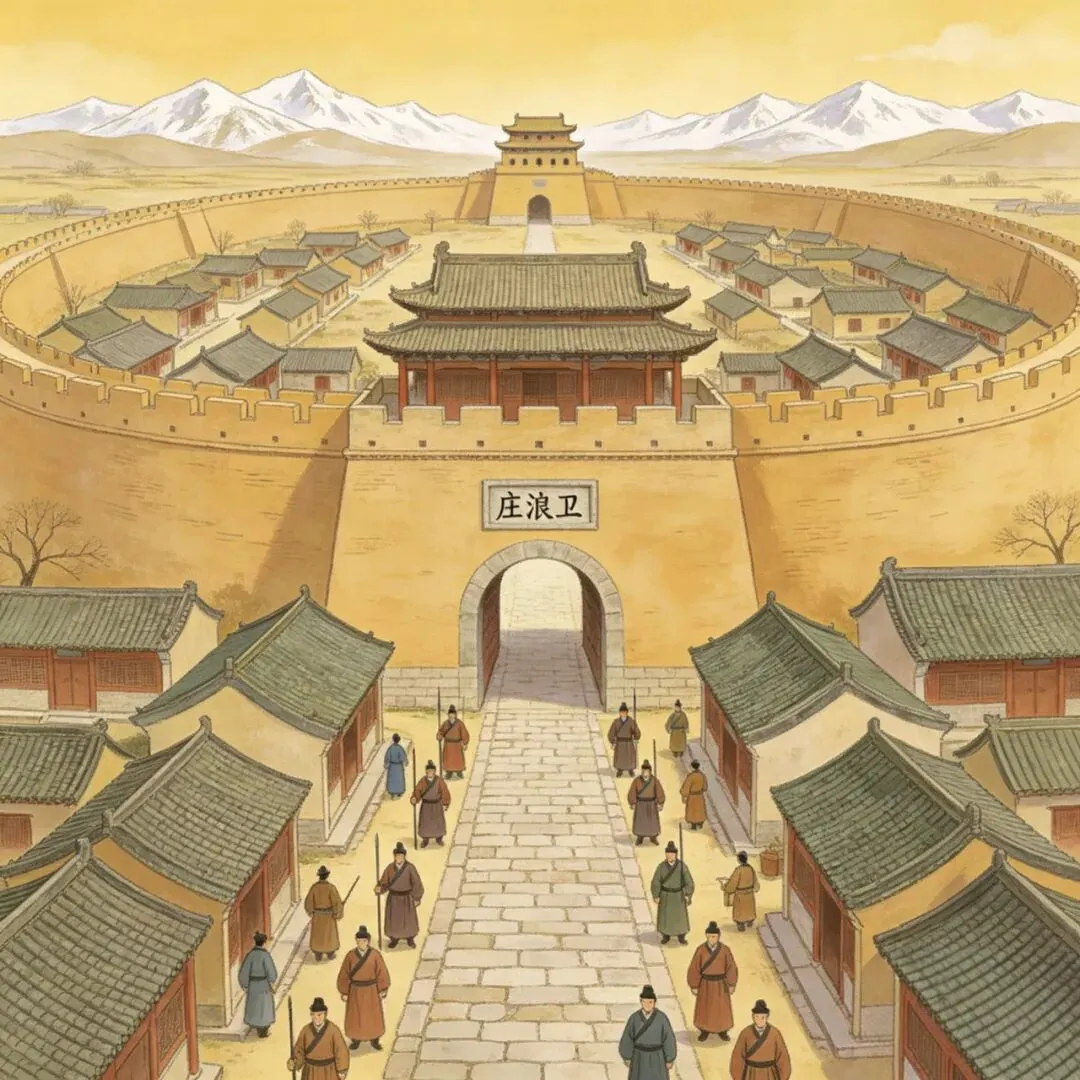驿路行进,节点中转。沿官方规划的应天府-西安-兰州-庄浪卫干线驿路行进,全程由官差管控,经西安(陕西都司)、兰州(肃王府/卫所枢纽)两大核心中转节点,核验身份、补充物资后,再向庄浪卫进发。