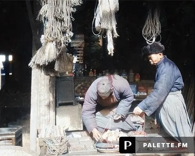 这张里头的活计叫杆秤,木盘上压着肉,指针一晃,秤砣咔哒往上一推,掌柜抿着嘴角,手掌上都是油光,妈妈说,挑秤的手最稳,少一钱都能觉出来,放到现在,扫码一滴滴,全靠屏幕认账了。
