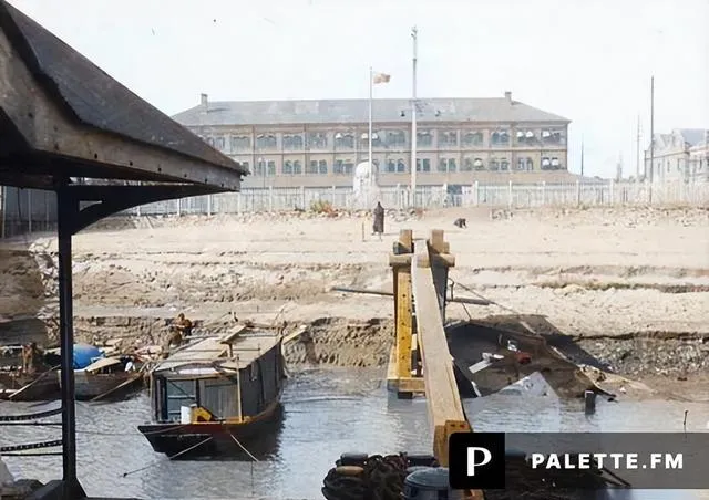 这张照片里,前头是简易工棚与木吊架,后头一排砖楼扛着旗杆,工人把绳索一拉,木梁咯吱落位,河里小船挤在岸边,像等号令一样,爸爸说,搭得慢也要搭得准,这话放哪儿都不亏。