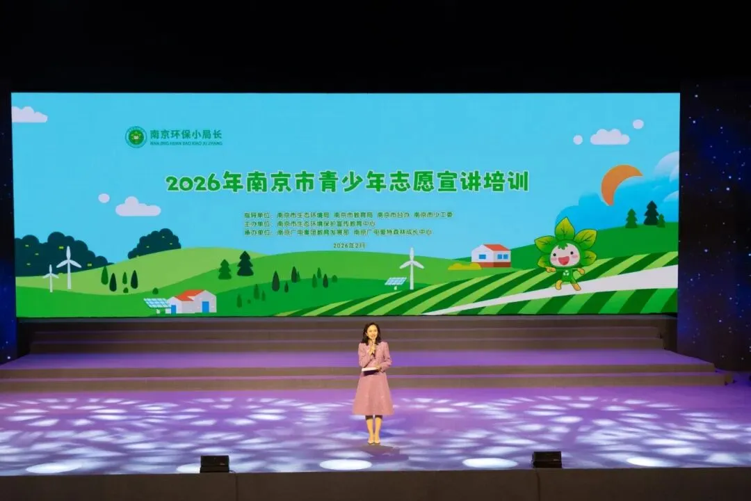 2 月 6 日,南京电视台 1500 平米演播厅内暖意融融、活力满满,2026 年南京市青少年志愿宣讲培训活动正式开启。全市 100 余名环保小局长、生态环境小志愿者、环境小记者齐聚一堂,开启了一场兼具专业度与趣味性的环保宣讲成长之旅,以青春之姿为美丽南京建设注入绿色动能。