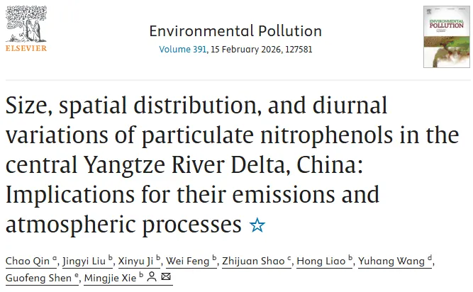 导语:环境科学经典期刊Environmental Pollution(IF=7.3,JCR一区)近日发表一项题为“Size, spatial distribution, and diurnal variations of particulate nitrophenols in the central Yangtze River Delta, China”的论文,系统揭示长江三角洲地区颗粒态硝基酚的分布规律与形成机制。