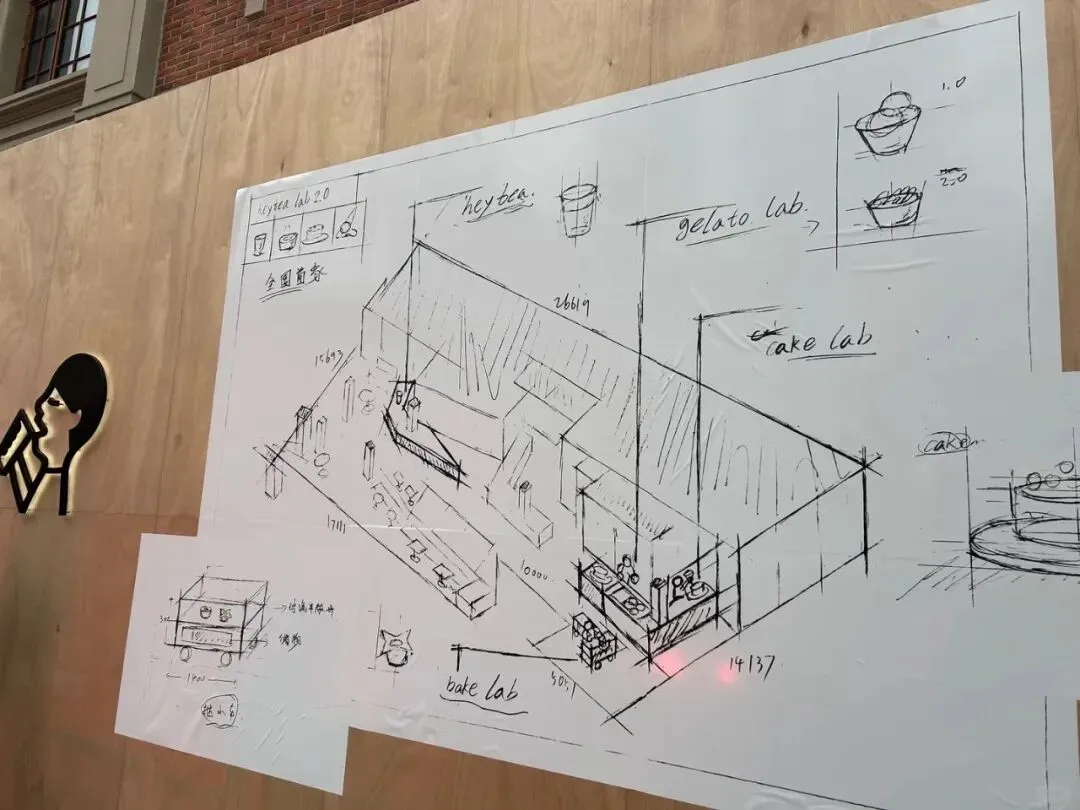 该门店公开手绘设计草图,提前曝光产品布局、空间结构等细节,引发消费者打卡。根据设计草图,门店规划了常规茶饮吧台、gelato lab制作区等四大核心板块,还设置了特色挞小车,将“实验性”理念融入细节。