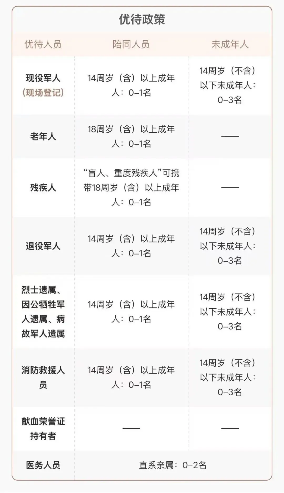 ✅优待人群包括: