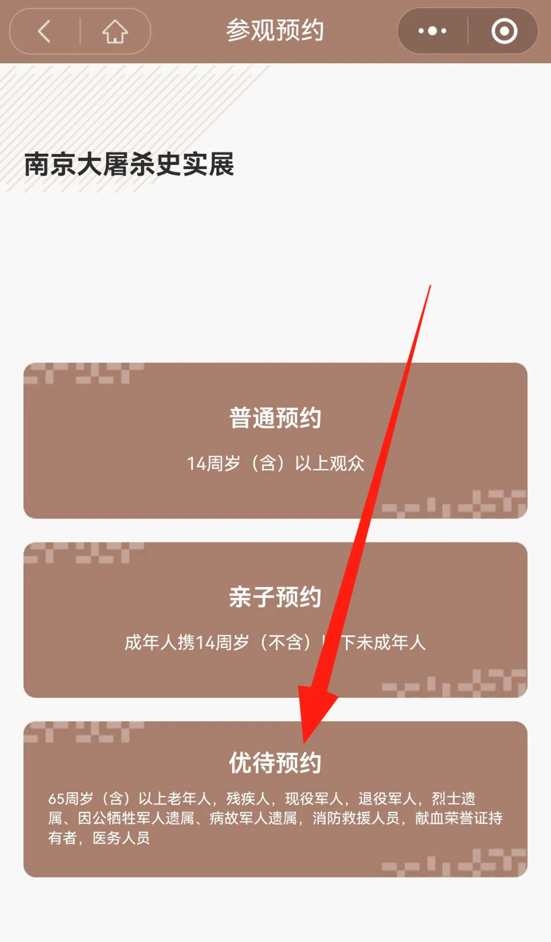 预约页面:选择“优待预约”入口。