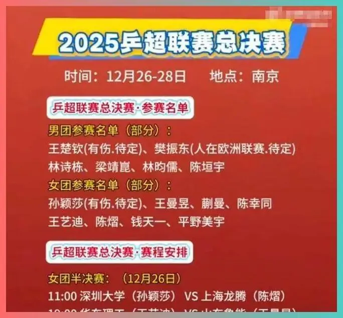 说到这里,谁能不心潮澎湃?今年的乒超总决赛,强队扎堆、明星云集,王楚钦、孙颖莎这些顶流选手都来了,场下场上都火花四溅。技术、心态、体能、团队战术,哪一点都不能掉链子。