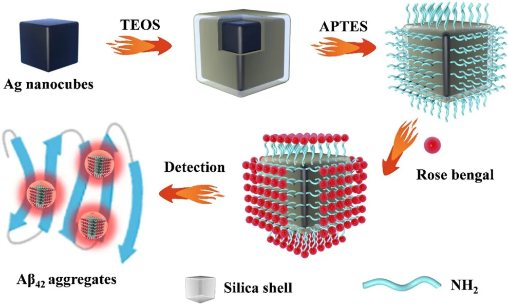 标题:银纳米立方体基等离子体增强荧光用于放大检测和原位追踪淀粉样蛋白β聚集体(Silver nanocubes-based plasmon-enhanced fluorescence for amplified detection and in situ tracking of amyloid-β aggregate)