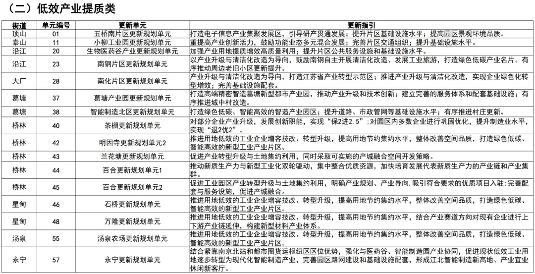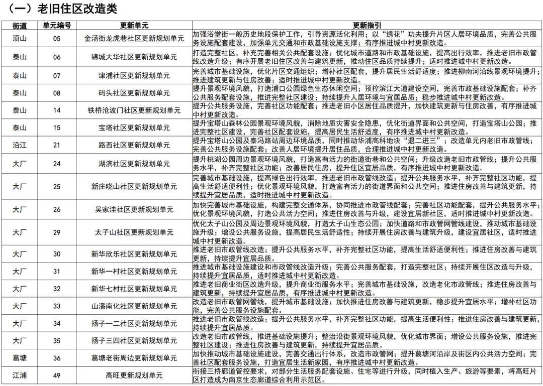 都说江苏散装,南京江北又何尝不是这种感觉呢?细究之下,各板块谁又服得了谁?规划中对每个单元都给出了更新指南,很细致,这里我就不多说了,大家直接看原表格。