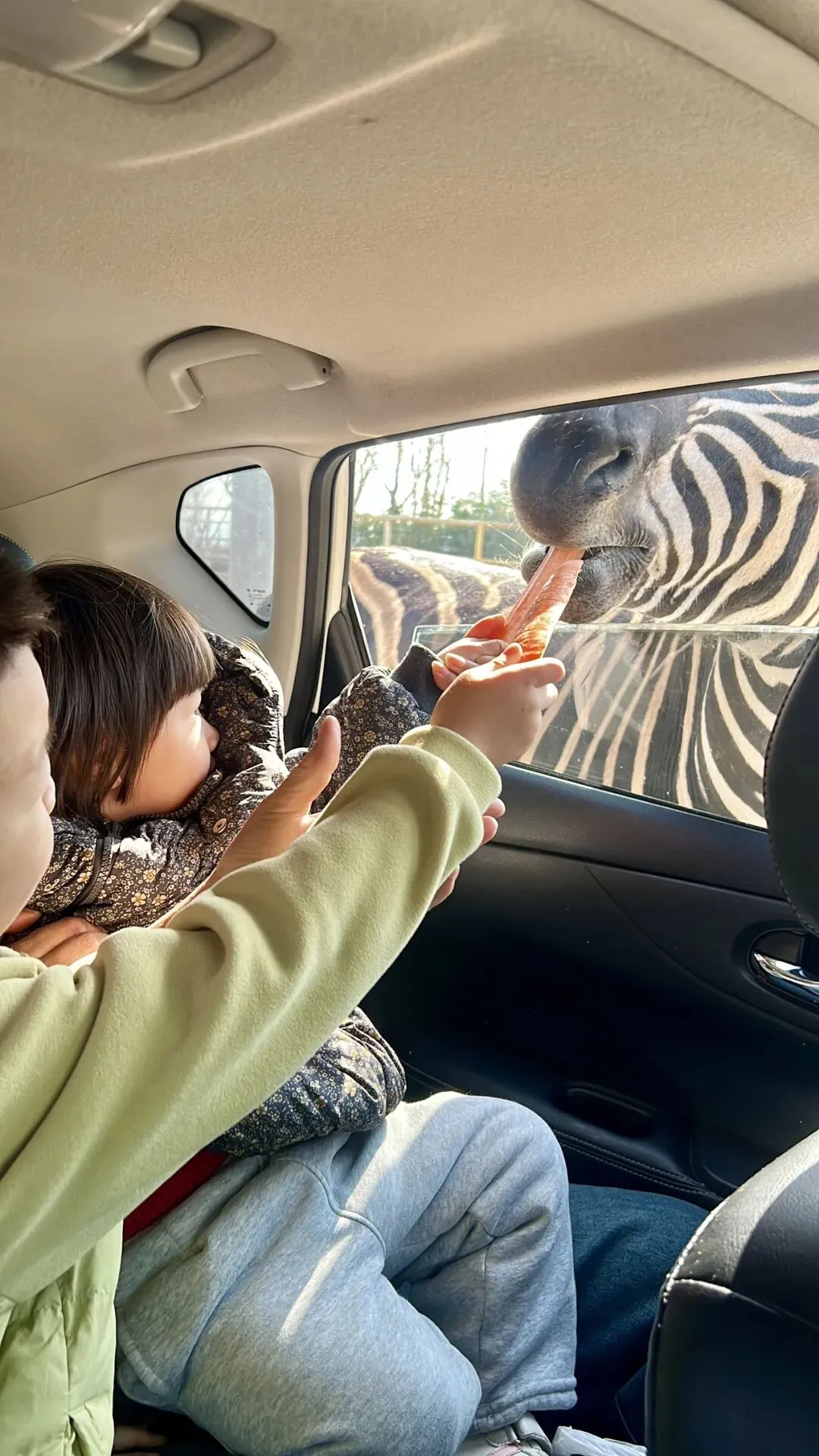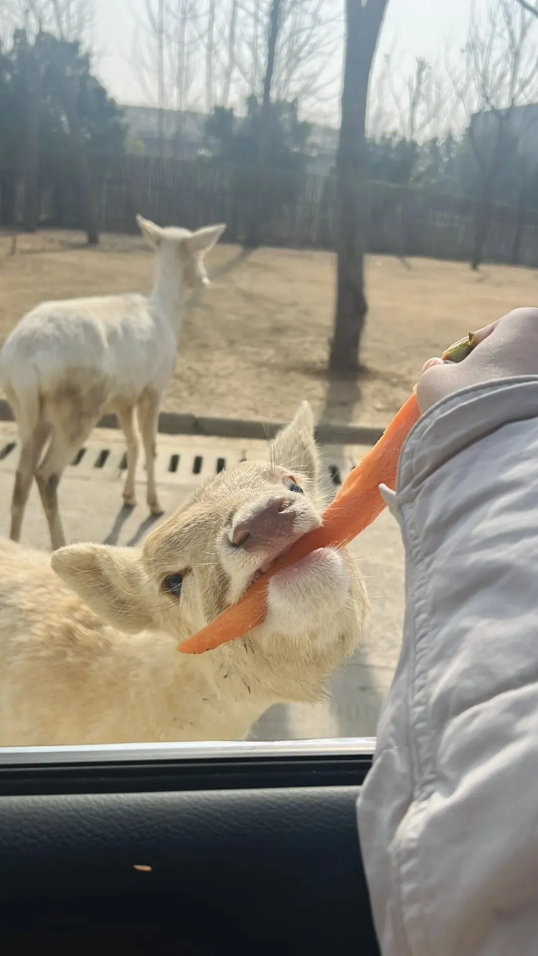 孩子透过车窗喂食动物的瞬间值得拍照留念