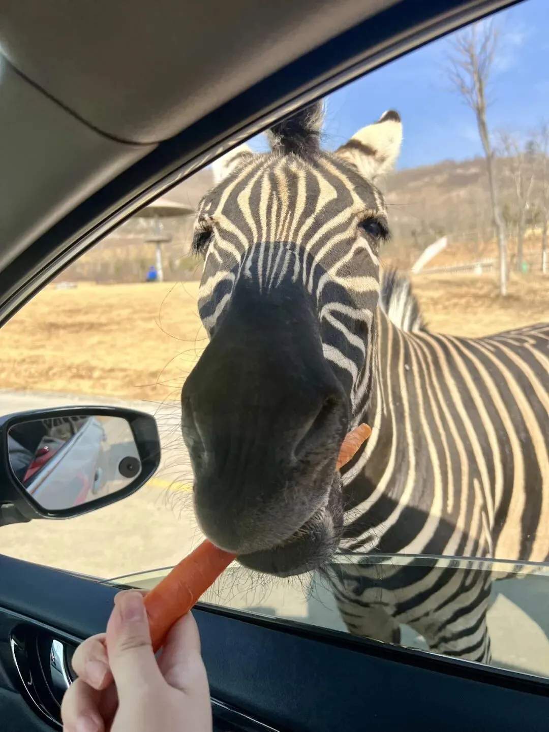 近距离接触斑马、长颈鹿、驼羊等温顺动物