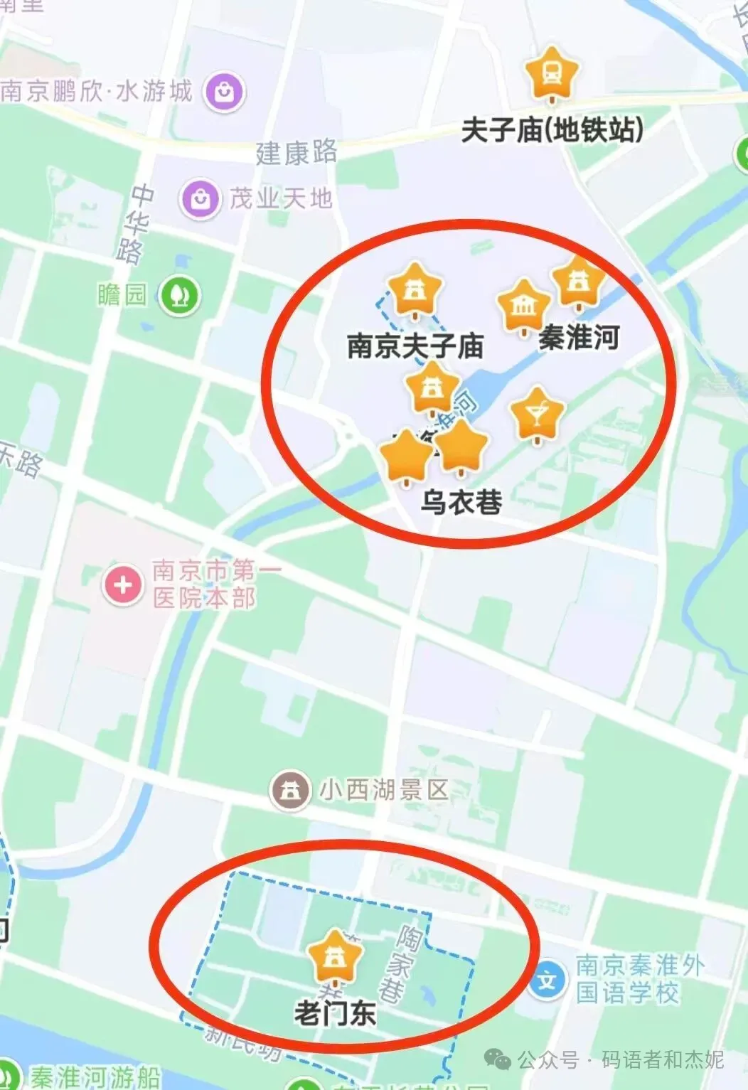 这个秦淮河区域主要景点分布,一定注意,这个区域的玩法分白天线路和晚上夜景。如果你的时间紧张,那就优先选择夜景。比如像老门东的打卡点,晚上的话,就拍不成了。过会有详细的线路介绍