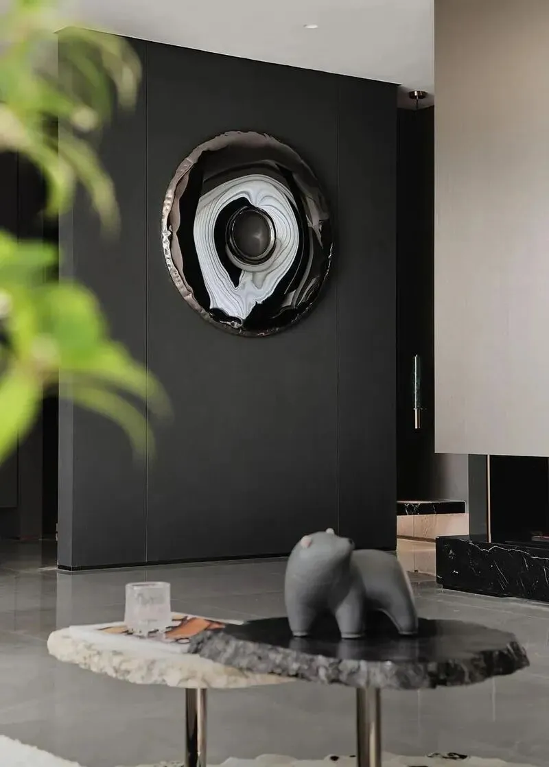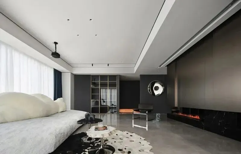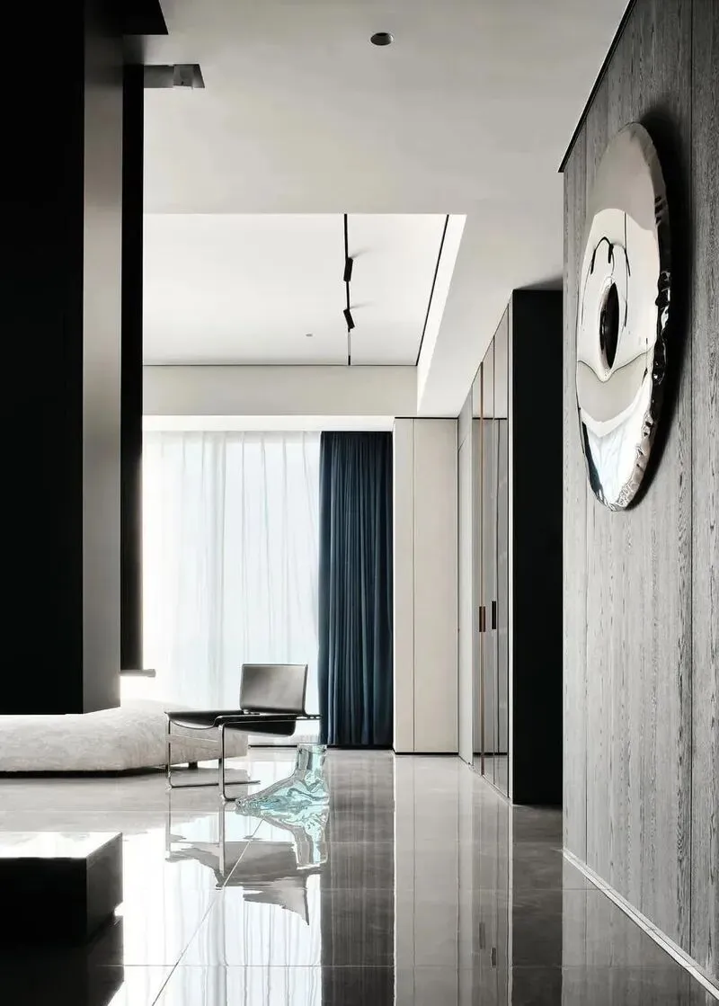1 客厅特别大,沙发选的浅色,刚坐下去就不想起来,旁边茶几上放了两个小音箱,空气里一直有音乐,背景墙是木质的,上面连个装饰画都没有,只有一盆绿植,这里光线安排得很舒服,我靠着窗户靠垫,手机也不用看了。朋友在旁边泡咖啡,我直接被他家的自动咖啡机吸引住,之前没用过,傻站了会儿,不会操作,他又来了一句“随便玩”,我心里想,这才是真·大平层标配啊。饮水机和小冰箱藏在岛台下面,完全看不出来,地面是浅灰色瓷砖,走起路来特别有空间感,没有杂物,视觉也干净,空气流动很顺。