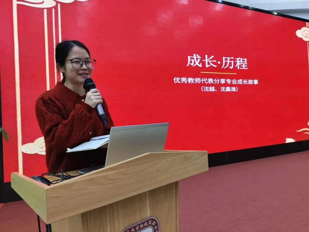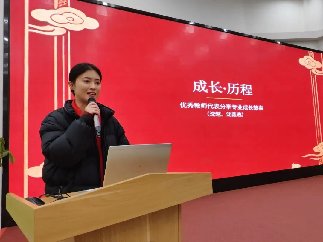 以初心致匠心,以笃行致远方。优秀教师代表沈越老师、沈鑫逸老师依次上台,分享自己的专业成长故事。她们结合自身教学经历,从教育实践、专业学习、团队成长等方面娓娓道来,那些在教育路上的探索、坚持与收获,深深感染着在场的每一个人,也让大家在交流中汲取了成长力量。