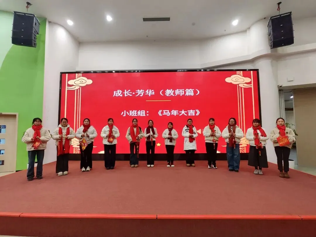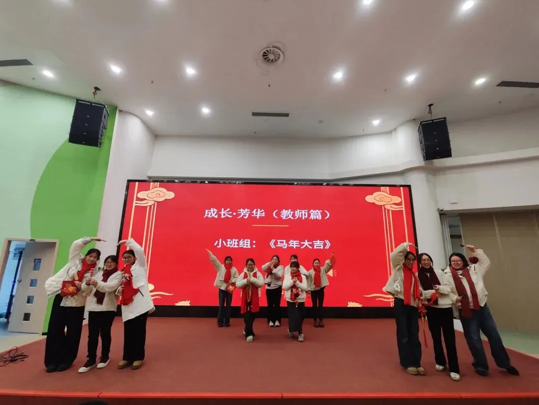 辞旧迎新,喜乐相伴。在 “成长・芳华” 环节,全园教职工化身 “文艺达人”,带来了精彩纷呈的 “迎新年” 节目展演。小中大年级组老师各展所长,节目形式多样、创意十足;后勤团队也不甘示弱,用最真挚的表演传递着喜悦与温暖。歌声、笑声交织在一起,汇成了一曲欢乐的新年赞歌,将现场氛围推向一个又一个高潮。