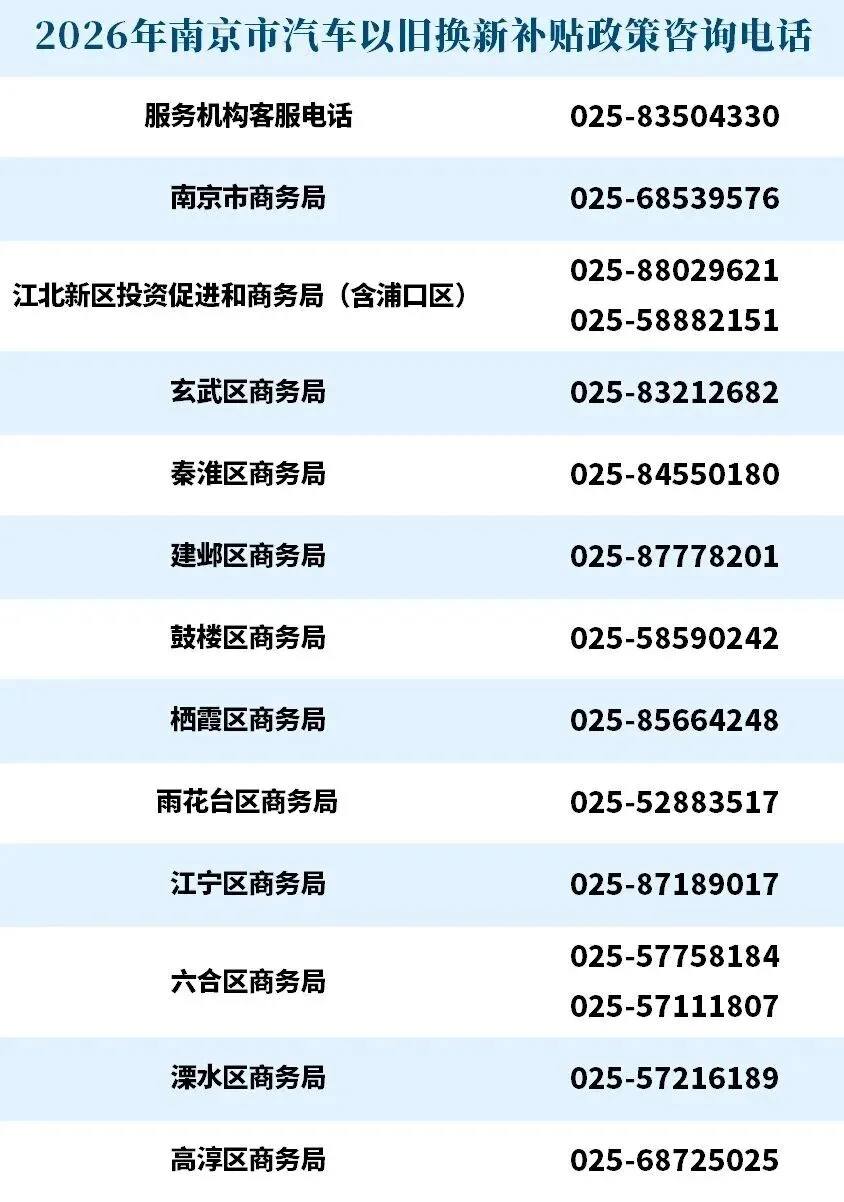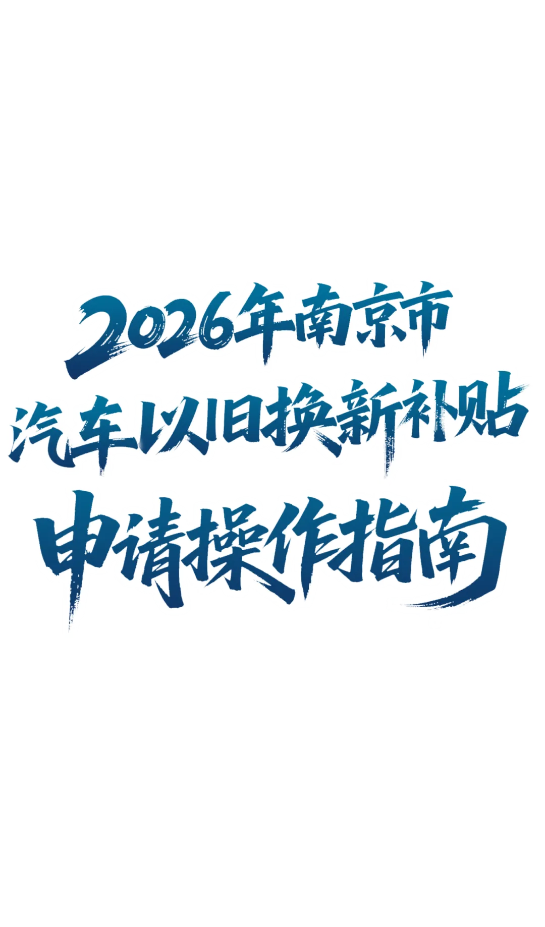 为认真贯彻落实《商务部等8部门办公厅关于印发〈2026年汽车以旧换新补贴实施细则〉的通知》(商办消费函〔2025〕467号)、《江苏省发展改革委 江苏省财政厅关于2026年实施大规模设备更新和消费品以旧换新政策的通知》(苏发改资环发〔2026〕63号)、《江苏省商务厅等7部门关于提质增效实施2026年消费品以旧换新政策的通知》(苏商流通〔2026〕26号)要求,进一步推动我市汽车消费,现编制2026年南京市汽车以旧换新补贴申请操作指南如下: