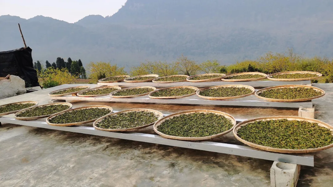 鲜叶摊放萎凋、铁锅杀青、手工揉捻、日光晒干……