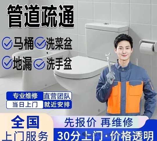 疏通马桶:通马桶、厕所、坐便;处理抹布、毛巾、清洁球等软硬物堵塞;支持拆卸疏通、异物捞取及马桶安装。
