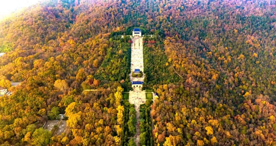 中山陵位于南京市玄武区紫金山南麓钟山风景区内,是中国近代伟大的民主革命先行者孙中山先生的陵寝,及其附属纪念建筑群,1961年成为首批全国重点文物保护单位,2006年列为首批国家重点风景名胜区和国家5A级旅游景区,2016年入选“首批中国20世纪建筑遗产”名录。中山陵整个建筑群依山势而建,由南往北沿中轴线逐渐升高,主要建筑有博爱坊、墓道、陵门、石阶、碑亭、祭堂和墓室等,排列在一条中轴线上,体现了中国传统建筑的风格,从空中往下看,像一座平卧在绿绒毯上的“自由钟”。融汇中国古代与西方建筑之精华,庄严简朴,别创新格。中山陵各建筑在型体组合、色彩运用、材料表现和细部处理上均取得极好的效果,音悦台、光华太、流徽榭、仰止亭、藏经楼、行健亭、永丰社、永慕庐、中山书院等建筑众星捧月般环绕在陵墓周围,构成中山陵景区的主要景观,色调和谐统一更增强了庄严的气氛,既有深刻的含意,又有宏伟的气势,且均为建筑名家之杰作,有着极高的艺术价值,被誉为“中国近代建筑史上第一陵”。