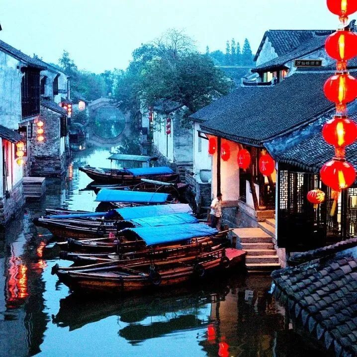 周庄位于苏州昆山、是国家首批5A级景区,江南六大古镇之一:素有中国第一水乡之称,在国内、国际所获奖项无数。周庄始建于1086年(北宋元祐元年),因邑人周迪功先生捐地修全福寺而得名。周庄历史悠久、是中国历史文化名镇,是典型的江南水乡风貌,有独特的人文景观,是中国水乡文化和吴地方文化的瑰宝。周庄民居仍为明清建筑,仅0.47平方公里的古镇有近百座古典宅院和60多个砖雕门楼,周庄民居古风犹存,还保存了14座各具特色的古桥。景点有:沈万三故居、富安桥、双桥、沈厅、怪楼、周庄八景等。在周庄的宅群中,沈厅、张厅是较有代表性的。沈厅由江南巨富沈万三后裔所建,整个建筑风格集中体现了江南水乡的特点。沈厅的梁柱相当粗大,上刻蟒龙、麒麟、飞鹤、舞凤,朝正厅的砖雕门楼高六米,上覆砖飞檐,下承砖斗拱,两侧垂花莲,刻有《西厢记》、《状元骑白马》的戏文浮雕。更奇的是,在一块长不盈尺的砖板上镌有前、中、远三景,刻艺精湛,构思巧妙,令人叹为观止。张厅规模虽不如沈厅那么宏伟,但格局特别,不同凡响。周庄最著名的景点双桥,又名钥匙桥,建于明代,由一座石拱桥和一座石梁桥组成,横跨于南北市河和银子浜两条小河上,石桥牢固而又质朴。双桥的出名源自一段佳话: 1984年,著名旅美画家陈逸飞以双桥为素材画了一幅油画,名为《故乡的回忆》。油画被美国石油大亨哈默高价买下,作为礼物送给了邓小平。次年,这幅油画又成为当年联合国协会的首日封。从此,周庄在恬静地沉睡了千年后,以优雅的姿态出现在世人面前,让越来越多的人领略到了中国第一水乡——周庄的旖旎风情、这才让周庄的双桥闻名遐迩。也是从那时起,周庄的旅游业开始发展。如今,双桥也是导游词只中笔墨最多的一笔。