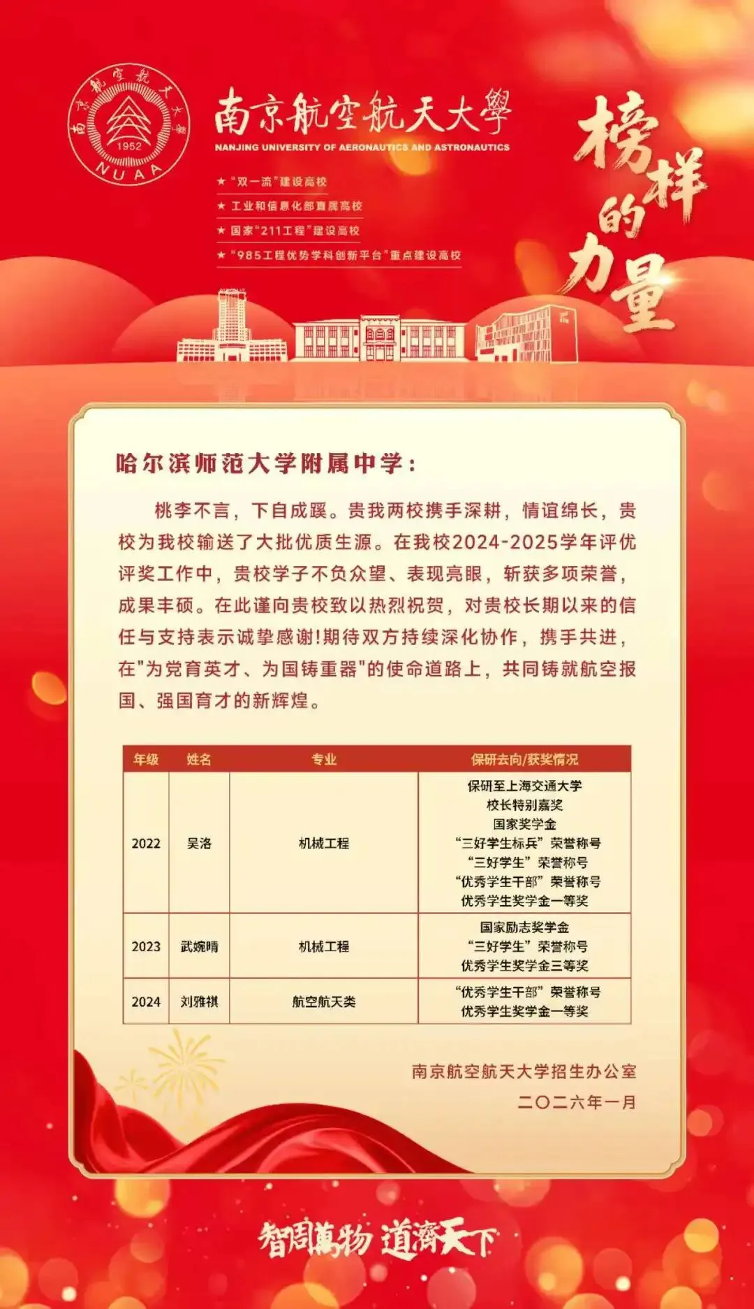 >南京航空航天大学向我校发来喜报!