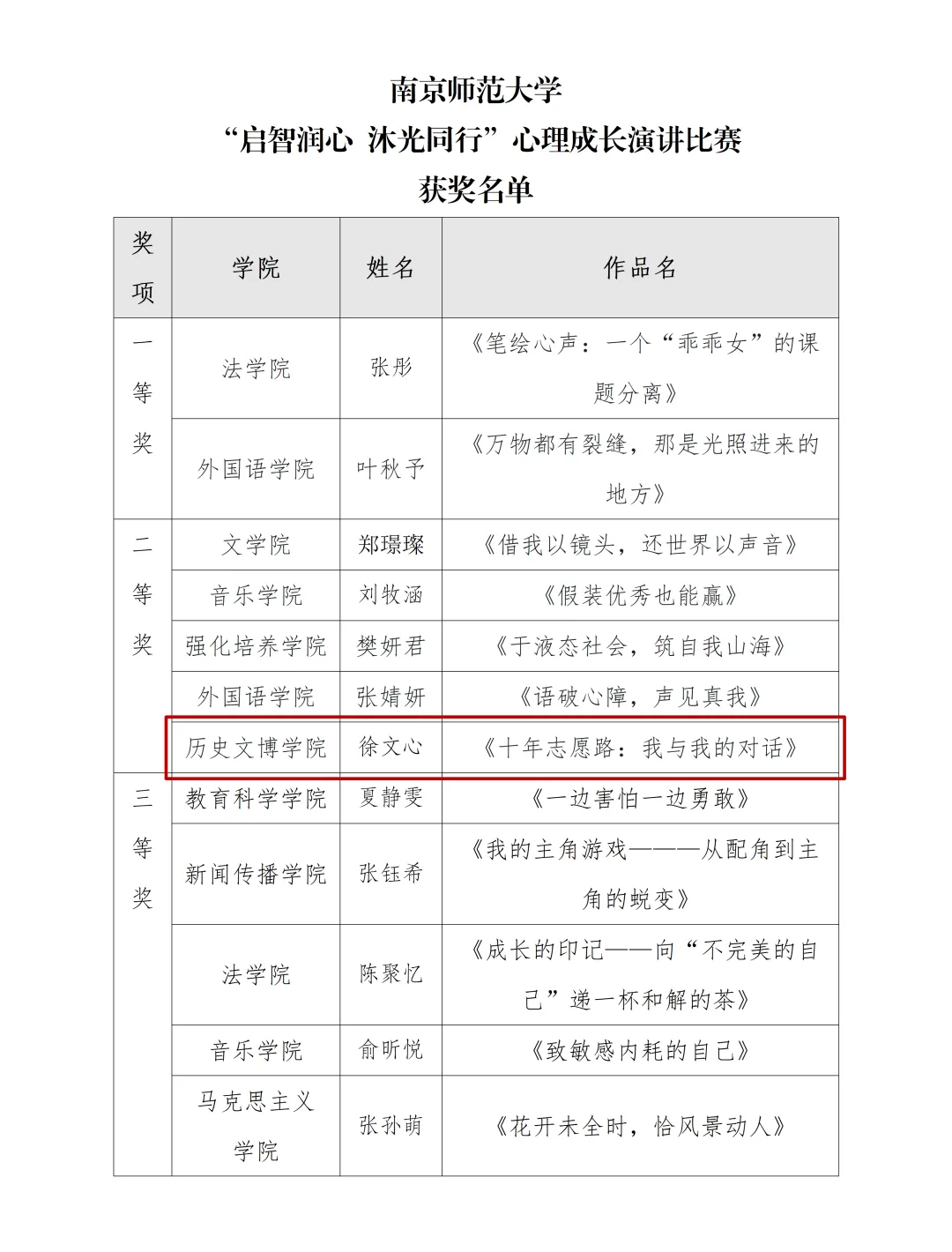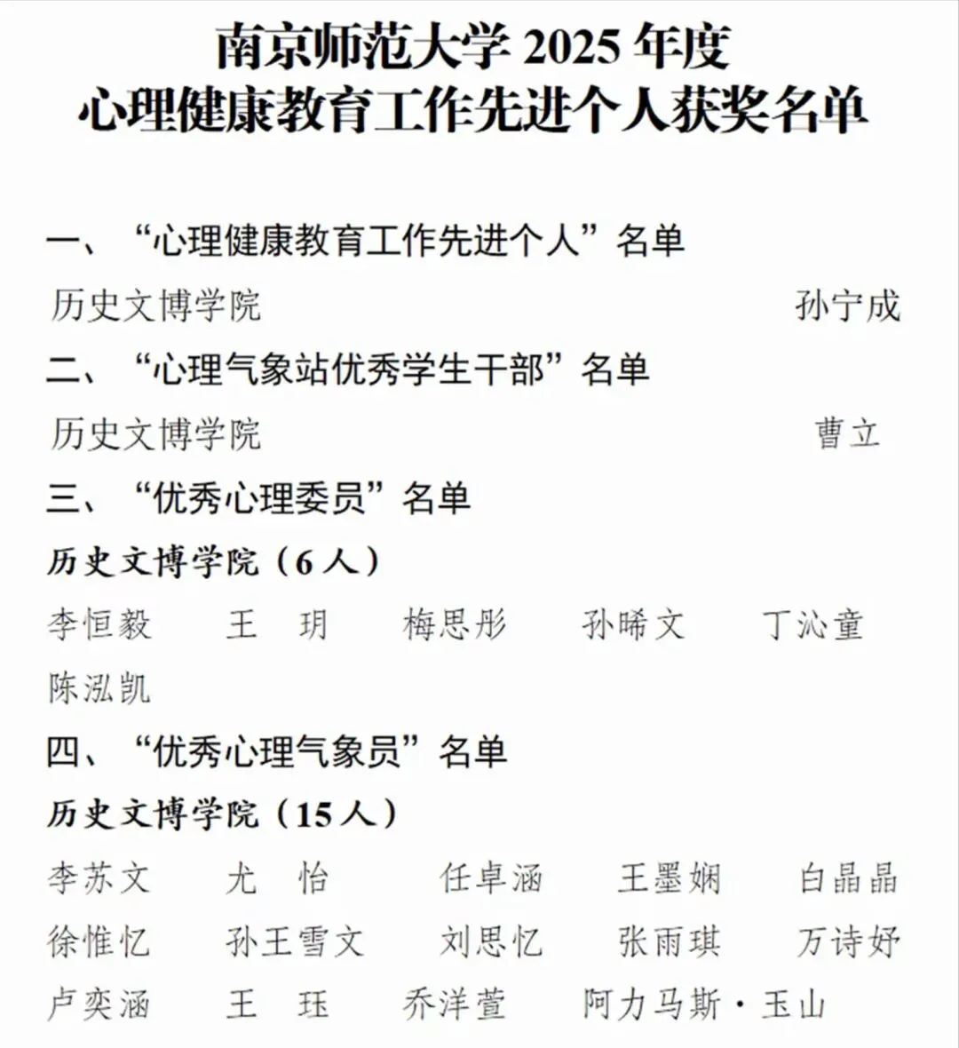 向阳生长 | 历史文博学院获评南京师范大学2025年度“心理健康教育工作先进集体”