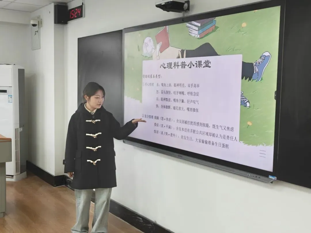 学院多措并举,设置《心理晴雨表》,反馈班级学生心理健康动态;依托心理气象站,组织开展心理团辅、心理班会等,以评促建,推进班级心理建设,着力营造和谐向上的良好氛围。