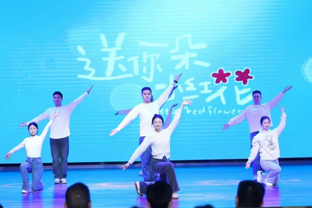 仪式在小学部教师灵动的舞蹈《送你一朵小红花》中拉开帷幕。舞姿传递着教育者的温暖初心与蓬勃活力,诠释着“教育是一场向美而行的花开”。