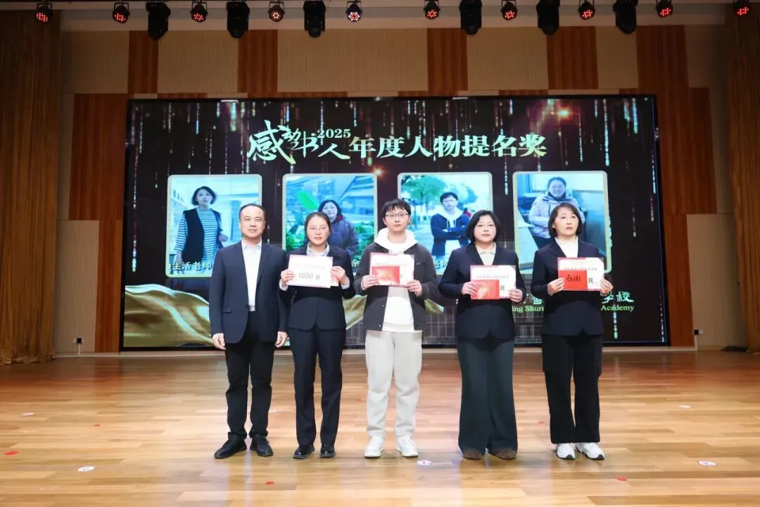 林明翠、徐余华、王舜、杨兴玉——四位荣获校长提名奖的老师,如同校园里静默生长的绿植,不争春色,却滋养着每一寸土壤。她们用日复一日的坚守,编织着书人岁月静好的底色,用最朴素的行动诠释着“以校为家,爱生如子”的深沉情怀。