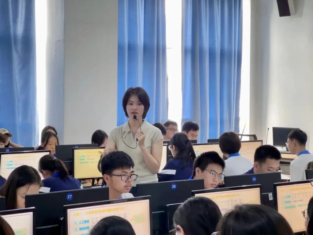 本学年,学校组织推磨听课104节,其中 AI 赋能公开课50节;承办市级教研活动4次,开设国家级公开课5节、省级10节、市级13节、区级26节。全校骨干教师可熟练运用智能教学平台、虚拟实验工具开展教学,实现从知识传授者到学习设计者的角色转型,学生高阶思维与创新能力显著提升。2025年4月,学校承办市级“AI 赋能教育 智领课堂改革”教学展示活动,为区域教育数字化转型提供实践样本。