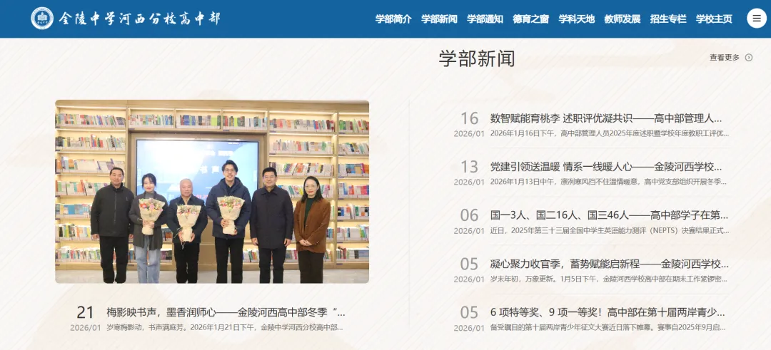 2025年,教师队伍收获多项荣誉,累计获综合及单项奖61项,开设省市区级讲座27次,区级以上公开课56节,4人次获市区级赛课奖项,21篇论文在省级以上刊物发表,10篇论文获省市奖项。姜宁获评南京市教学名师、南京市数学学科带头人;赵敏哲、徐婷分获省历史、信息技术青年教师基本功大赛一等奖、二等奖;多人获评南京市教坛新秀、建邺区优秀青年教师。