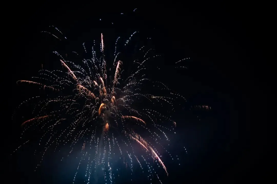 千万朵烟花带着滚烫的温度冲向天际,金色的光雨如流星般簌簌坠落,把整片天地都染成温暖的橙黄