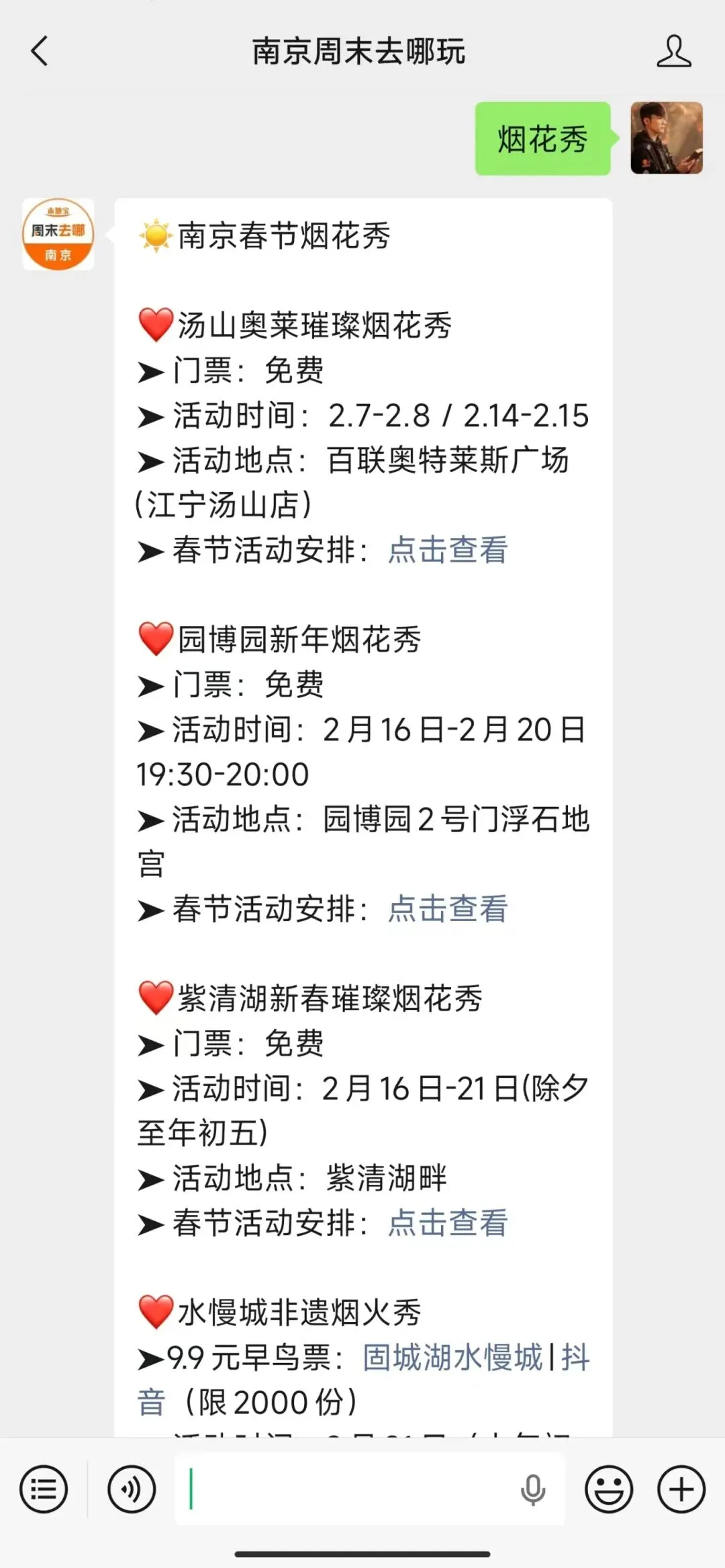 小编提醒:扫描下方二维码,关注【南京周末去哪玩】公众号,私信回复【烟花秀】即可获取2026南京春节烟花秀安排